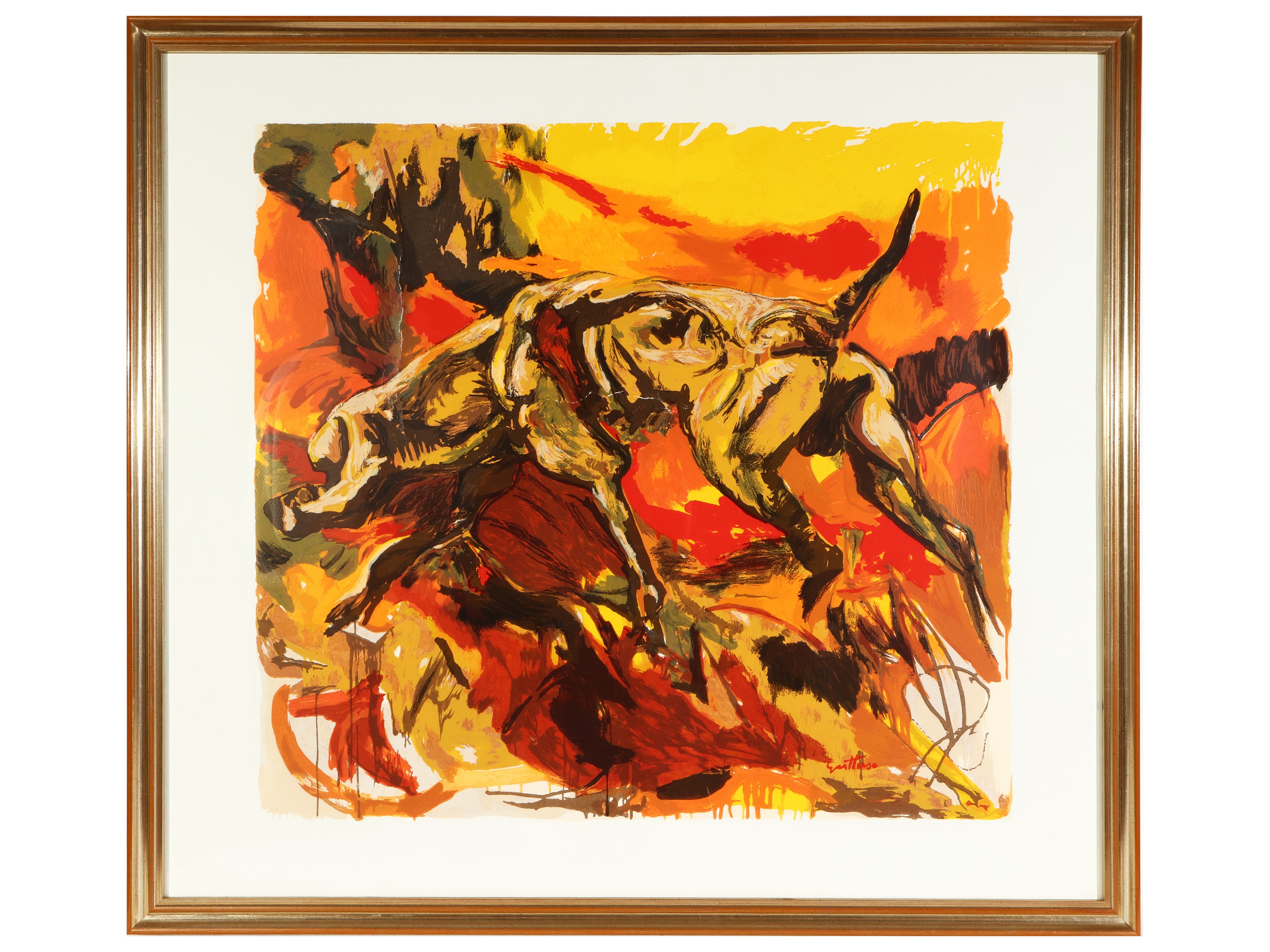 serigrafia su carta, firmata, in cornice, alcuni difetti