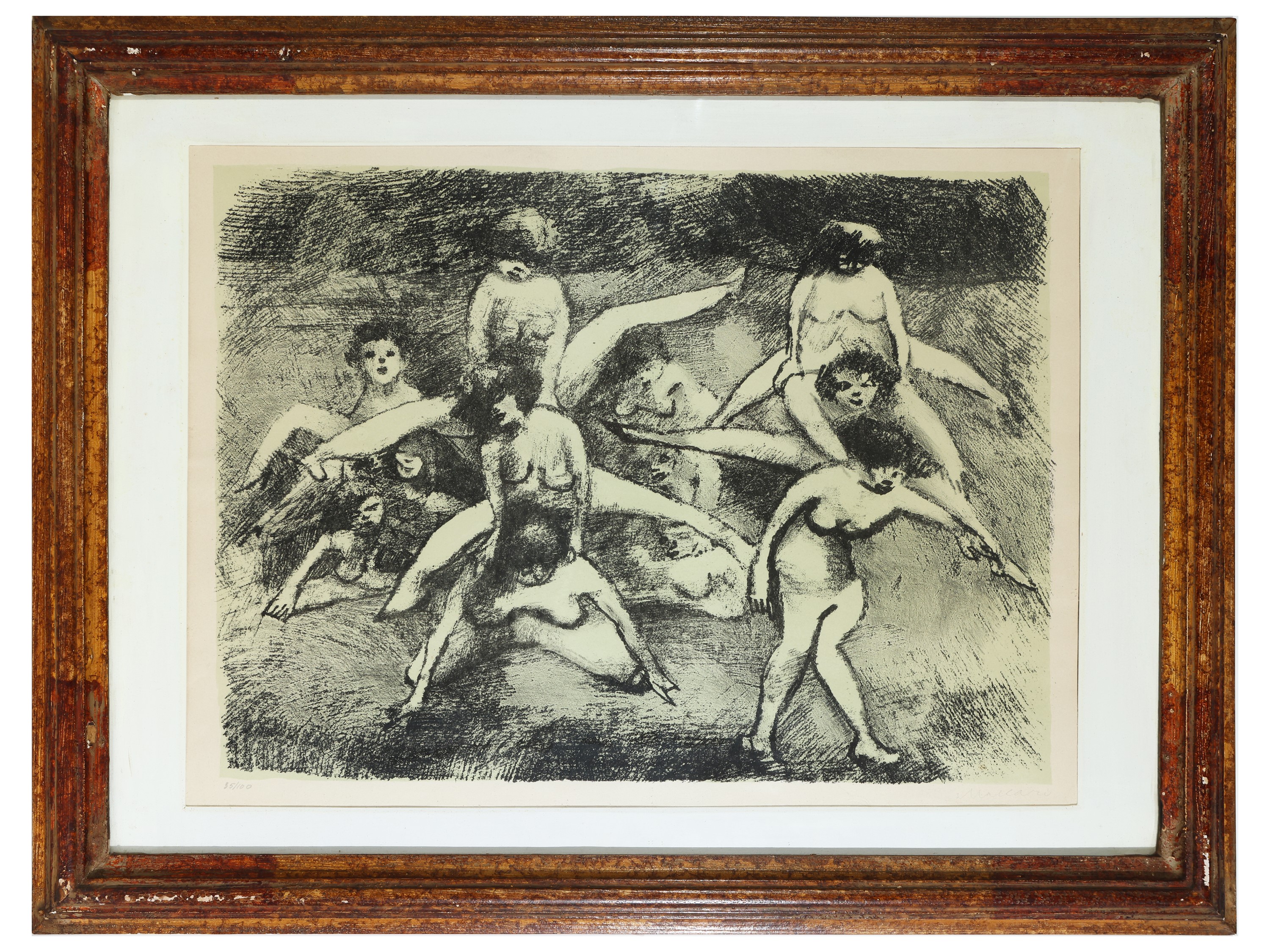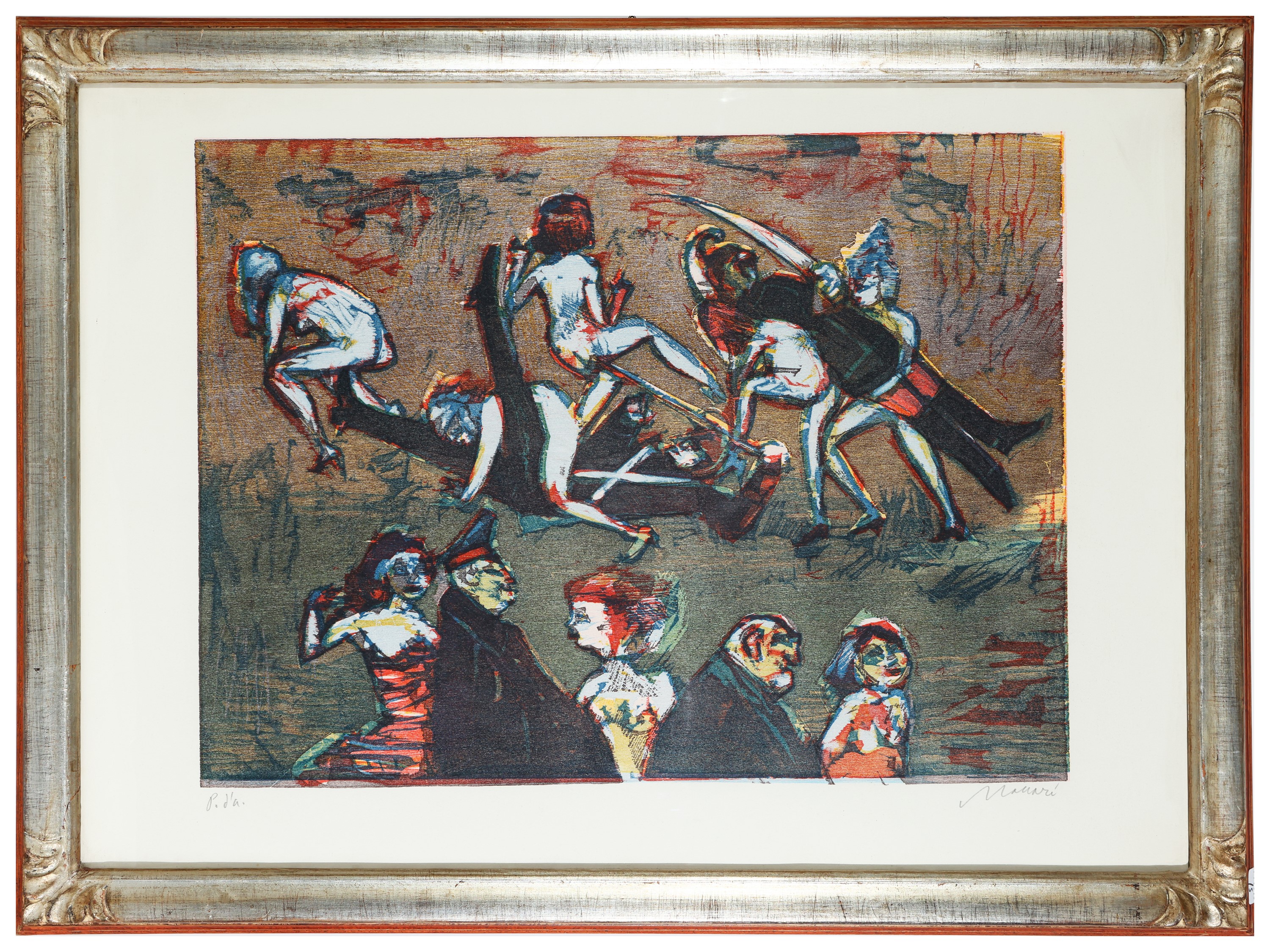 da cm 50x38 a cm 70x50 (5) composto da due xilografie di Mino Maccari, un'incisione di Primo Conti, una litografia di Bruno Saetti ed un disegno a matita su carta di Gastone Breddo, firmati, in cornice, alcuni difetti