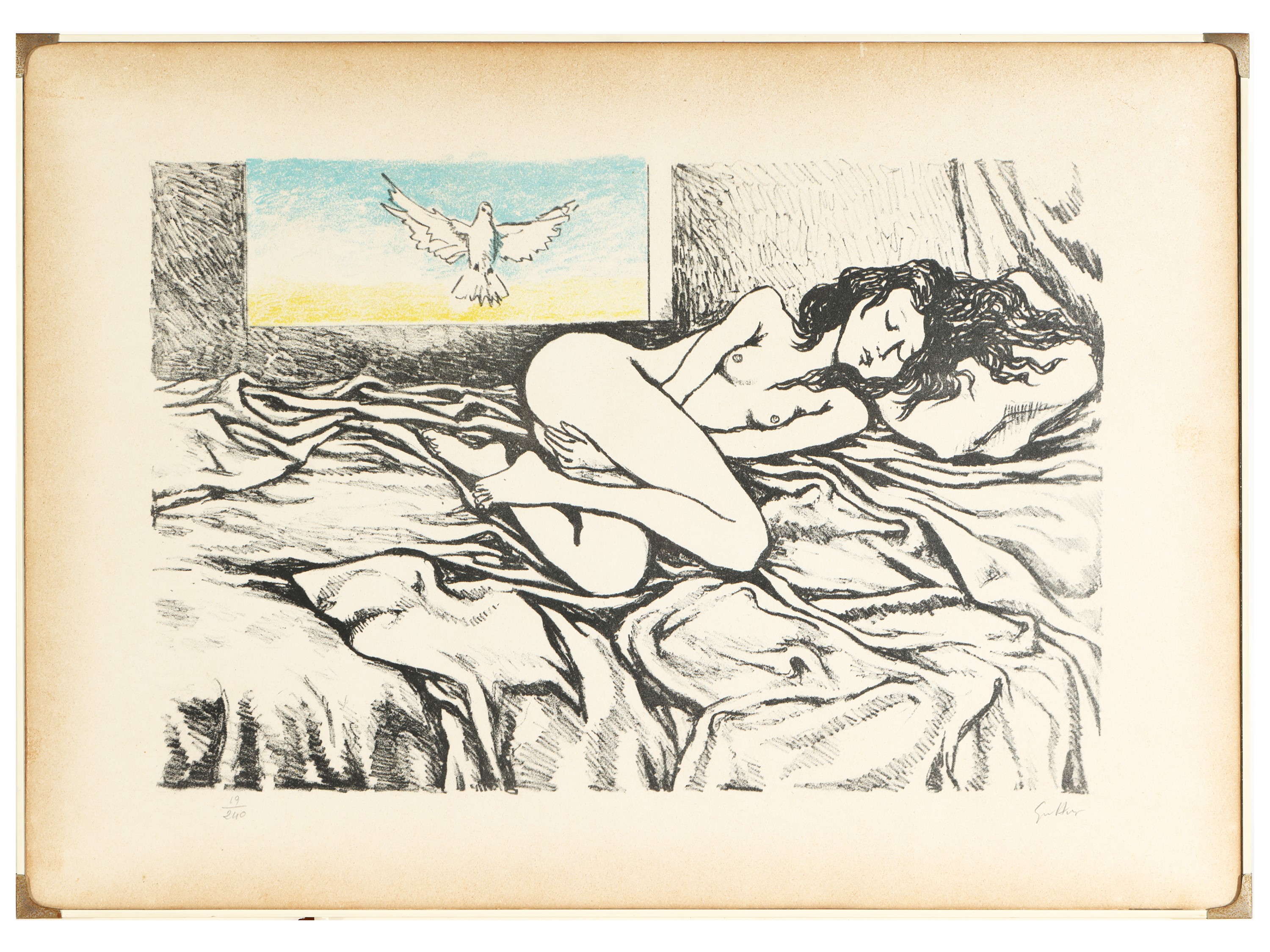 litografia, es 19/240, firmata, in cornice, reca ingiallimento lungo i margini