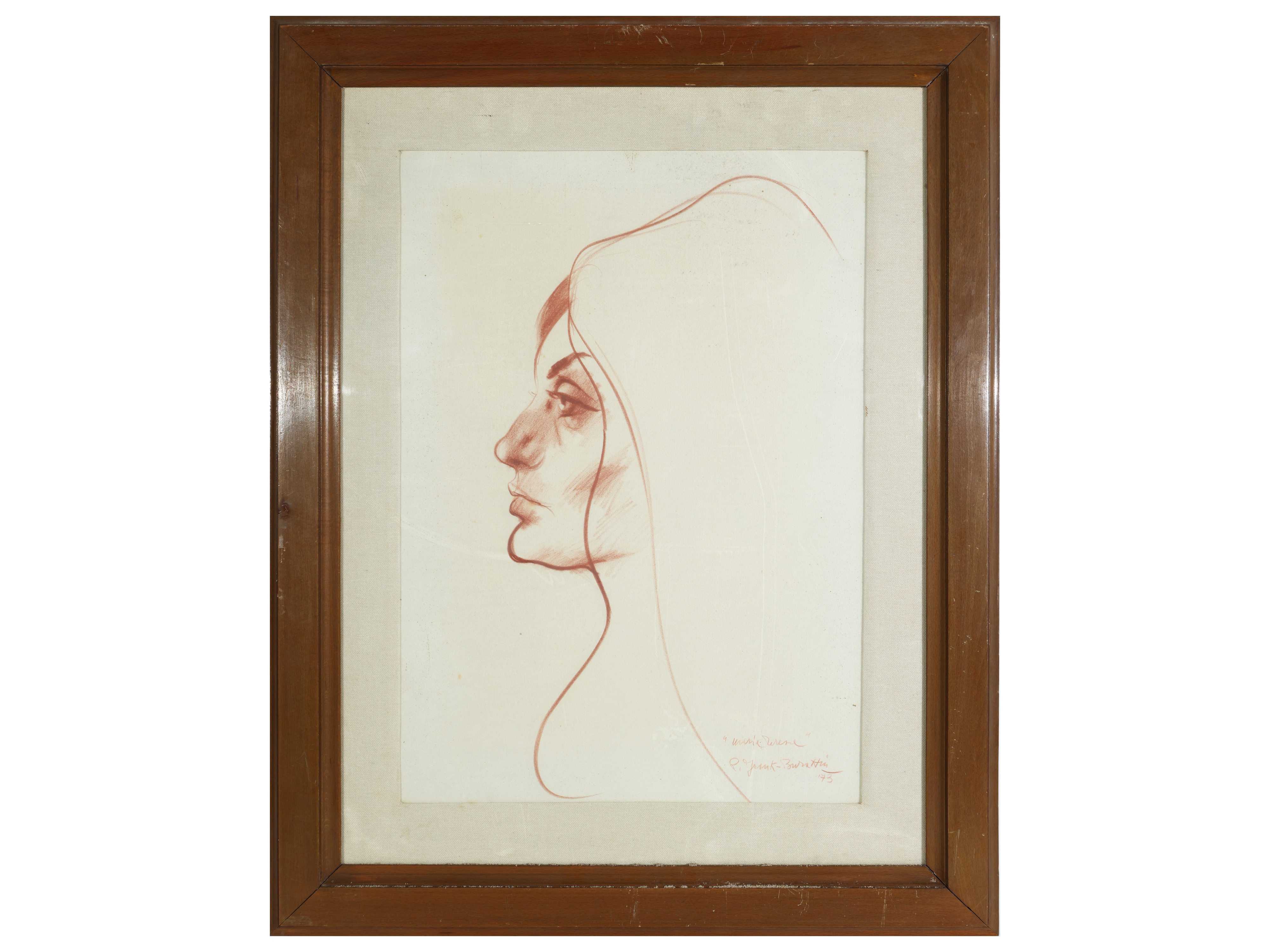 raccolta di cinque bozzetti a tecnica mista su carta e tela, firmati, alcuni datati 1973 e 1978, in cornice