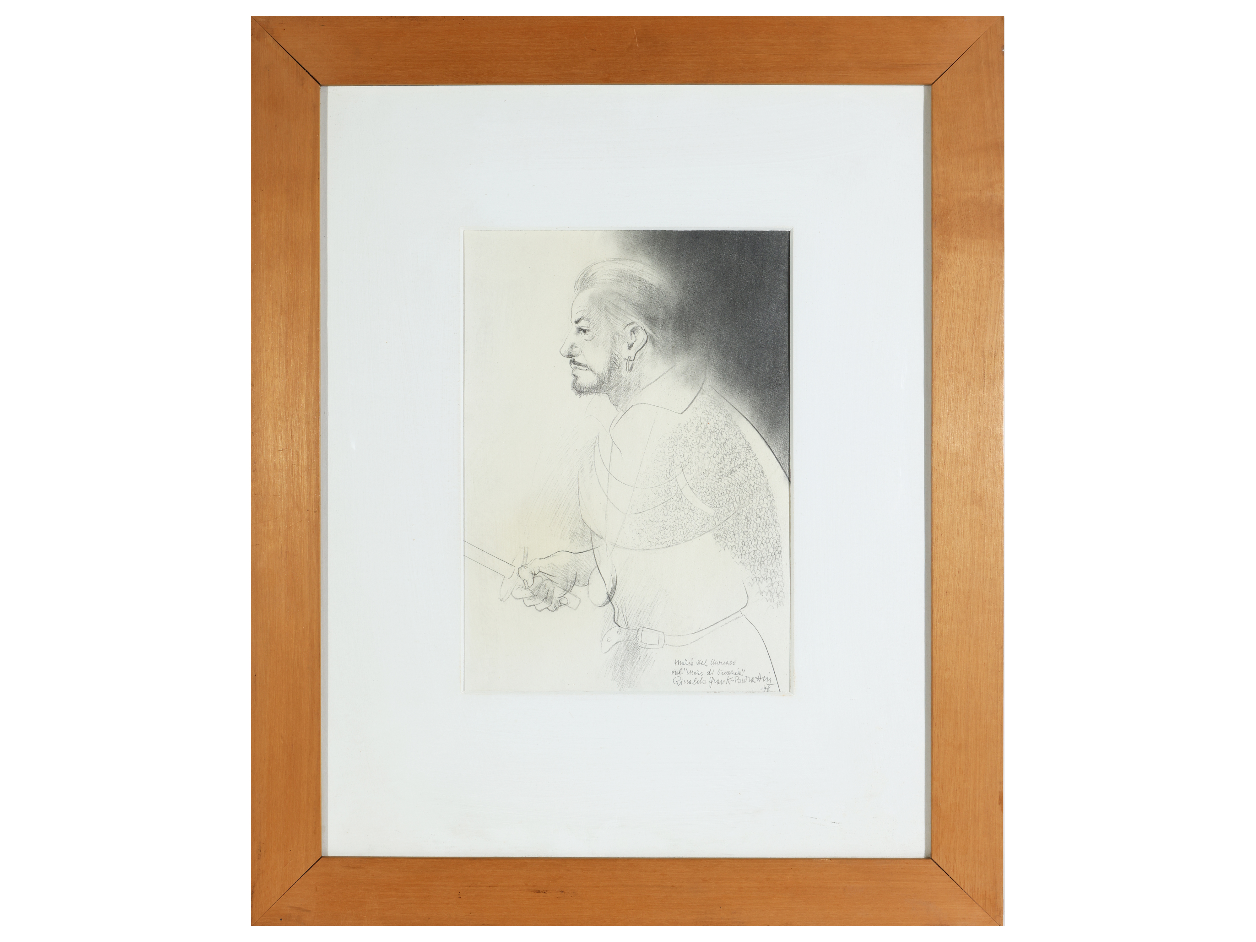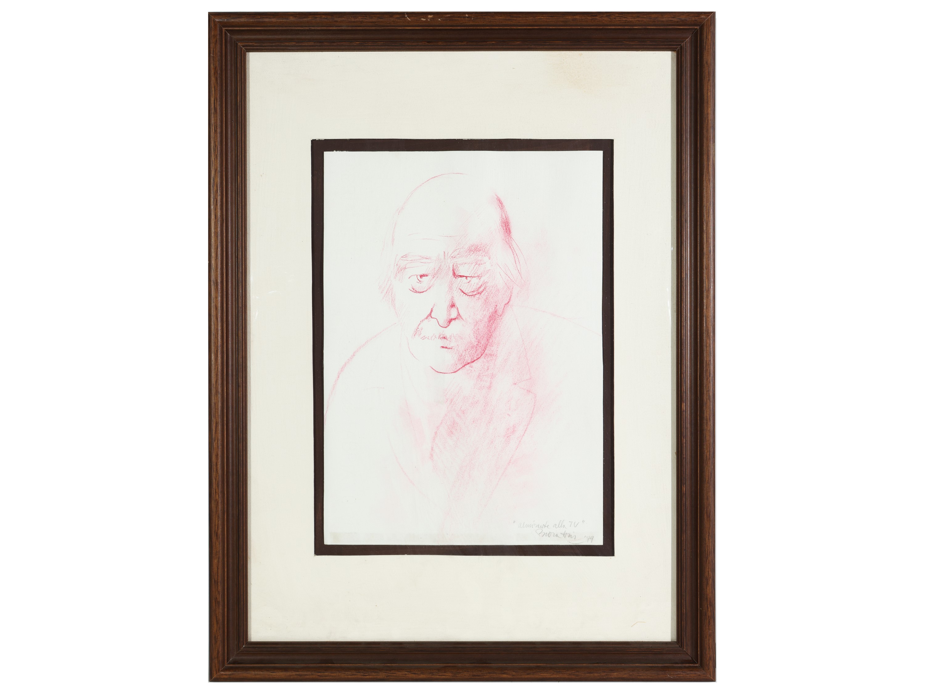 raccolta di sei disegni a tecnica mista, firmati, alcuni datati 1978 e 1979, in cornice, minime imperfezioni