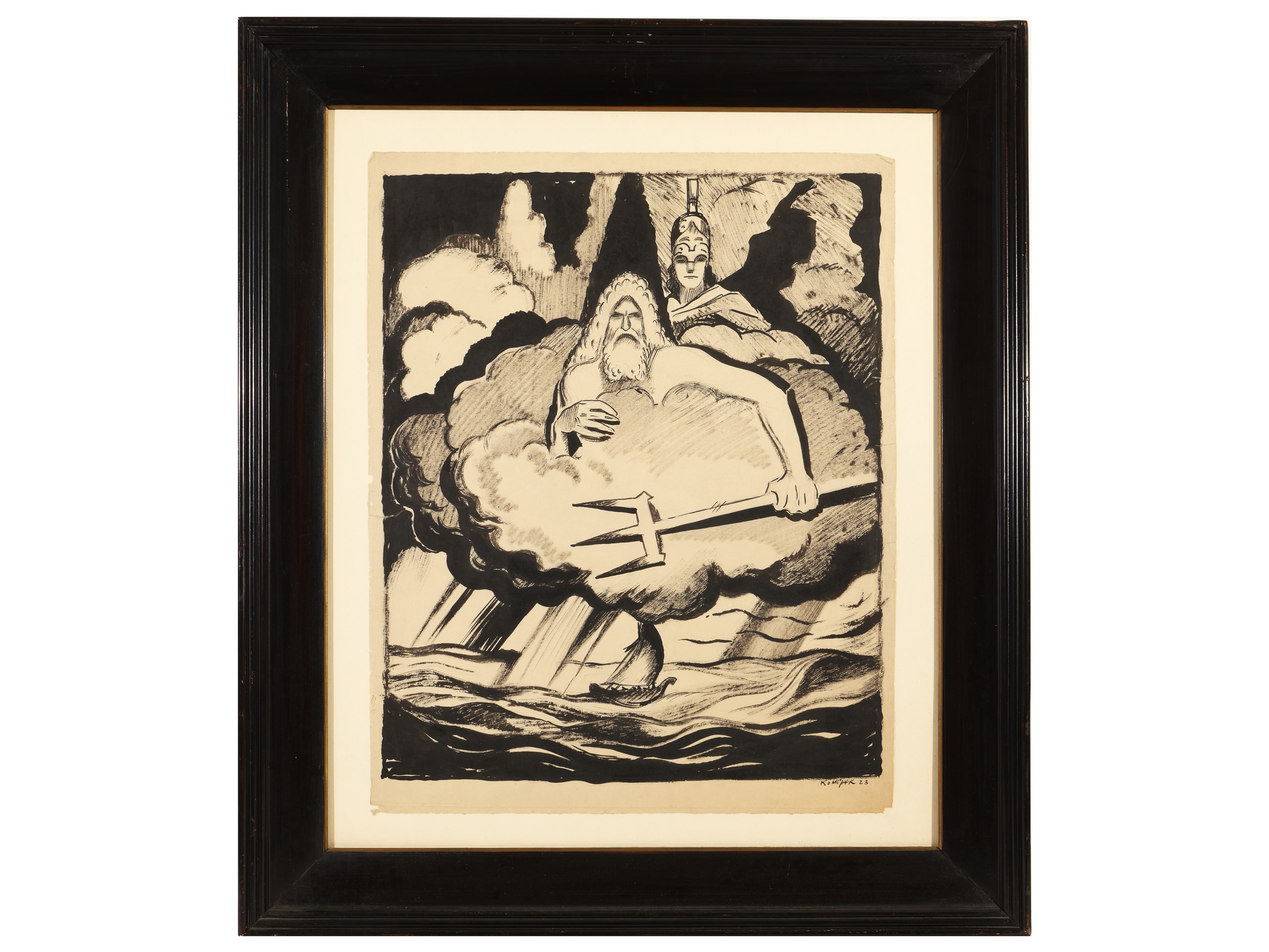 prima metà del XX secolo due tecniche miste su carta, una siglata e datata KPK 1932 e l'altra firmata e datata Komi Pek 1923, in cornice
