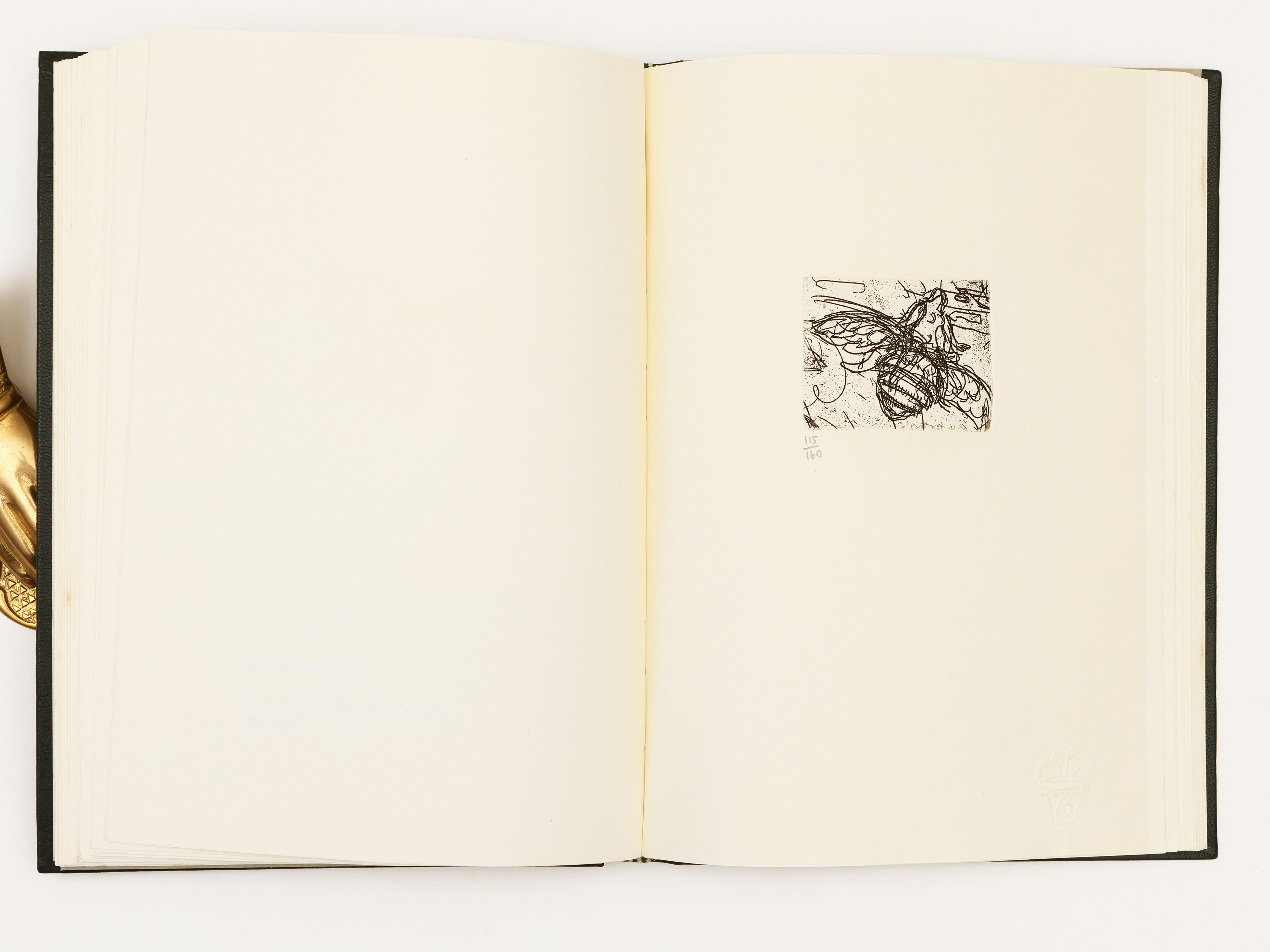 Trenta artisti per la Bibbia. Introduzione di Luigi Santucci, 1987, circa 400 p. n.n. (185x255 mm). Con 29 incisioni acqueforti e xilografie (150x110 mm) tratte da rami e legni originali, numerate e firmate dei seguenti Maestri: Veronesi, Bonanotte, Magnolato, Caruso, Beer, Bodini, Consadori, De Carolis, Hajnal, Bellotti, Rossi, Breddo, Bartolini, Diamantini, Palazzi, Guidi, Calavalle, Macrì, Da Osimo, Giaroli, Manfredi, Brindisi, Piacesi, Ciarrocchi, Cattaneo, Scorselli, Treccani, Berto, Gardenal. Le incisioni di Bruno Da Osimo, Adolfo De Carolis e Luigi Bartolini non sono firmate e recano l'autentica del timbro a secco dell'editore. Bronzo dorato di Enrico Manfrini rappresentante la “Risurrezione” (78x58 mm) applicato al piatto anteriore. Es. n. 116/160 in custodia.
