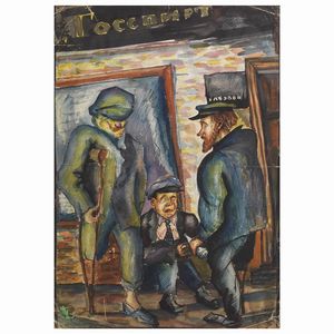 SCUOLA RUSSA Figure tecnica mista su carta cm 33x24 firmato in basso a destra