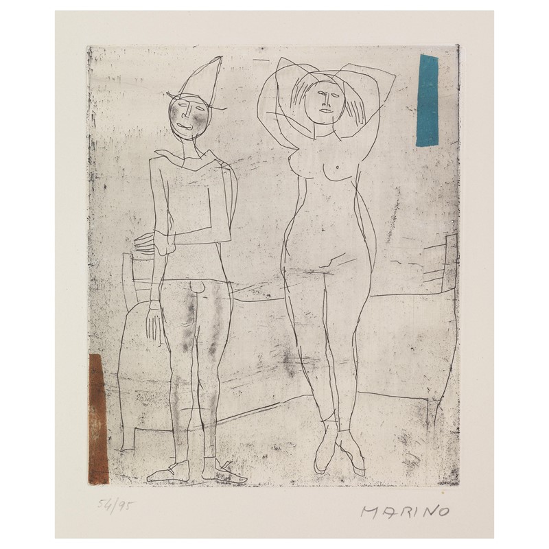 MARINO MARINI (Pistoia 1901 - Viareggio 1980) Giocolieri 1971 acquaforte e acquatinta cm 29x25 su foglio cm 56,3x38 esemplare 54/95 firmato e numerato a matita al margine inferiore