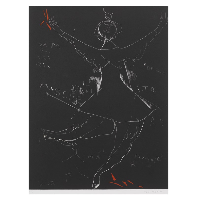 MARINO MARINI (Pistoia 1901 - Viareggio 1980) Danza minima II 1973 acquaforte e acquatinta cm 64x48,5 su foglio cm 99x69 p.a. firmato e numerato al margine inferiore a matita
