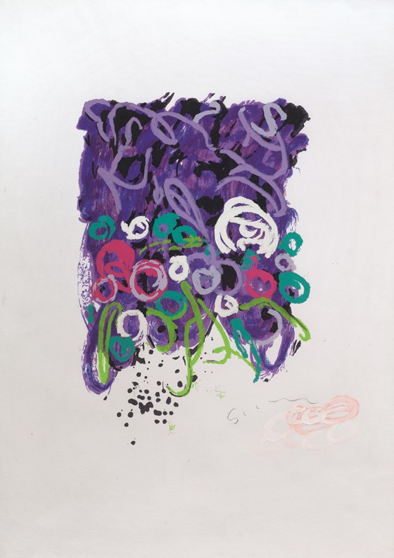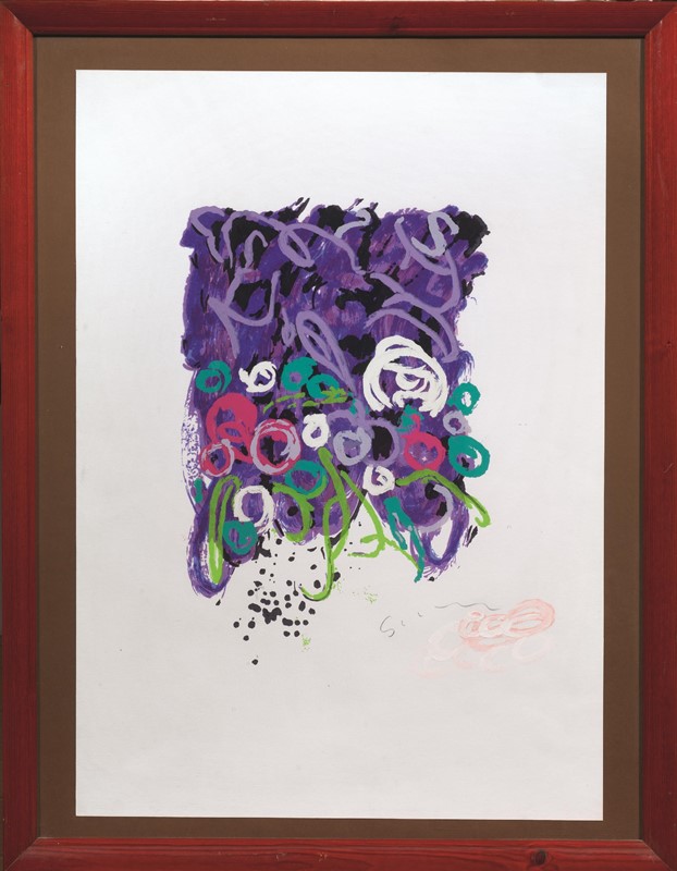 MARIO SCHIFANO (Homs 1934 - Roma 1998) Senza titolo 1984-85 serigrafia su cartoncino cm 70x50 p.a edizione di XXX esemplari al retro cartiglio di garanzia Art Market