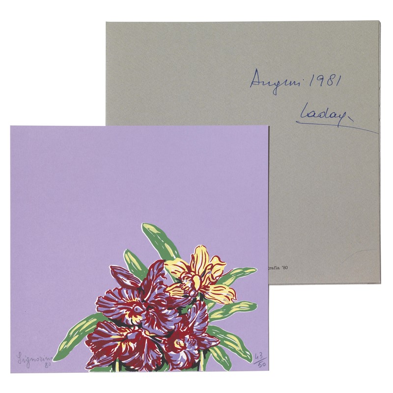 PAOLO DORAZIO (Chieti 1944) Senza titolo 1973-1974 serigrafia originale a 14 colori su cartoncino cm 13,5x23,5 biglietto n.: 8/150 firmato, datato e numerato in basso a matita