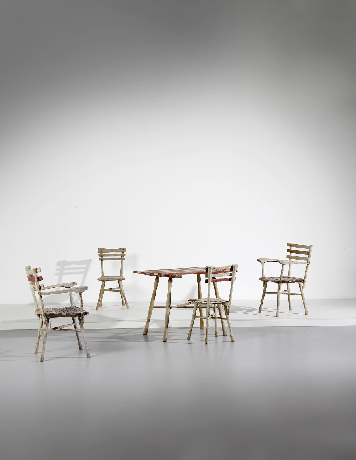 anni Venti. Sedie: 85 x 48 x 49 cmPoltroncine: 92 x 64 x 55 cm