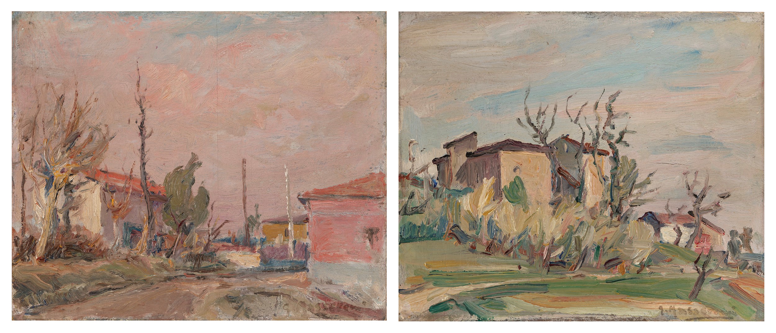 coppia, entrambi olio su compensato, cm 25 x 30 (ciascuno)