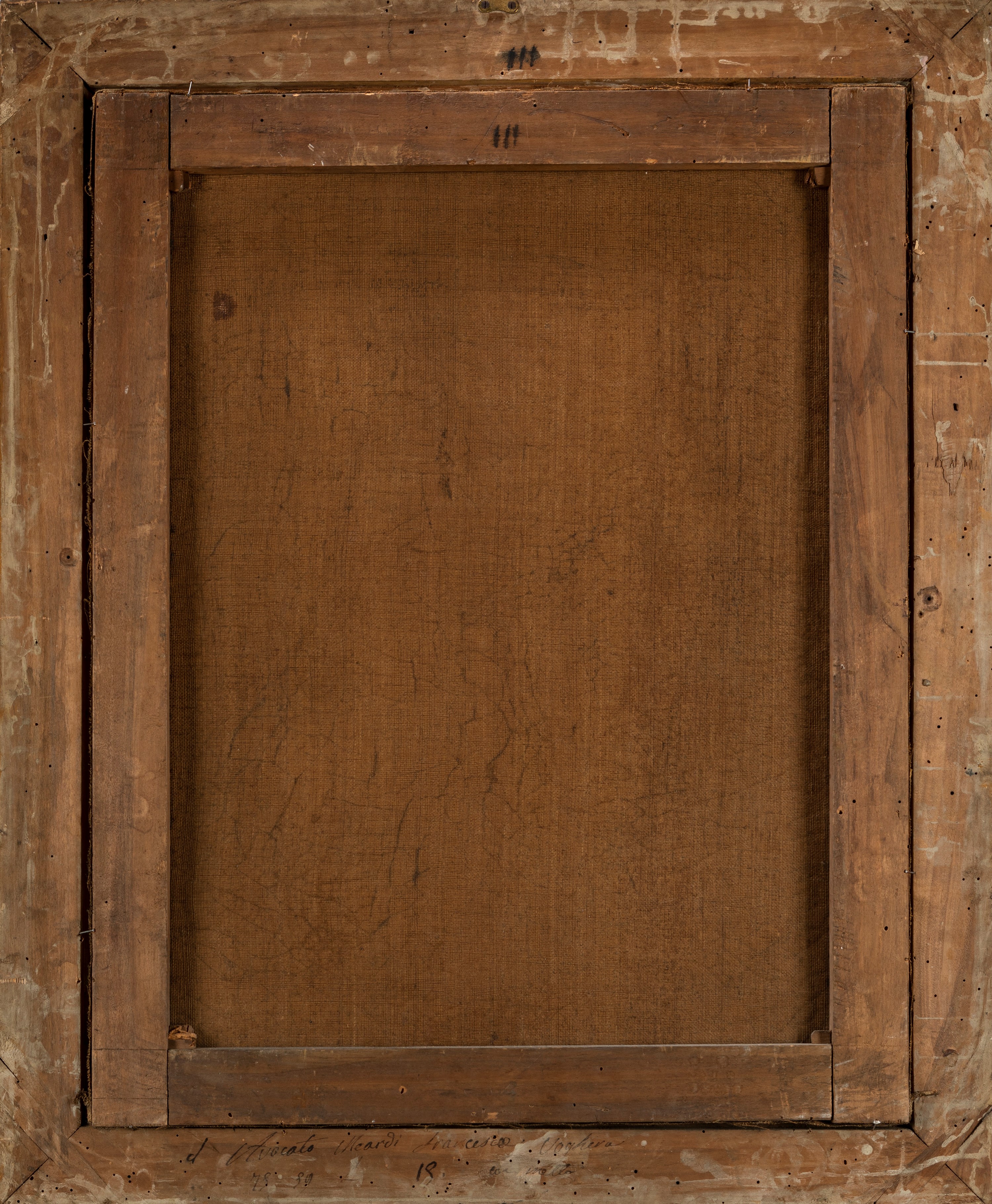 Sul retro, sul telaio, iscrizione relativa alla provenienza.
