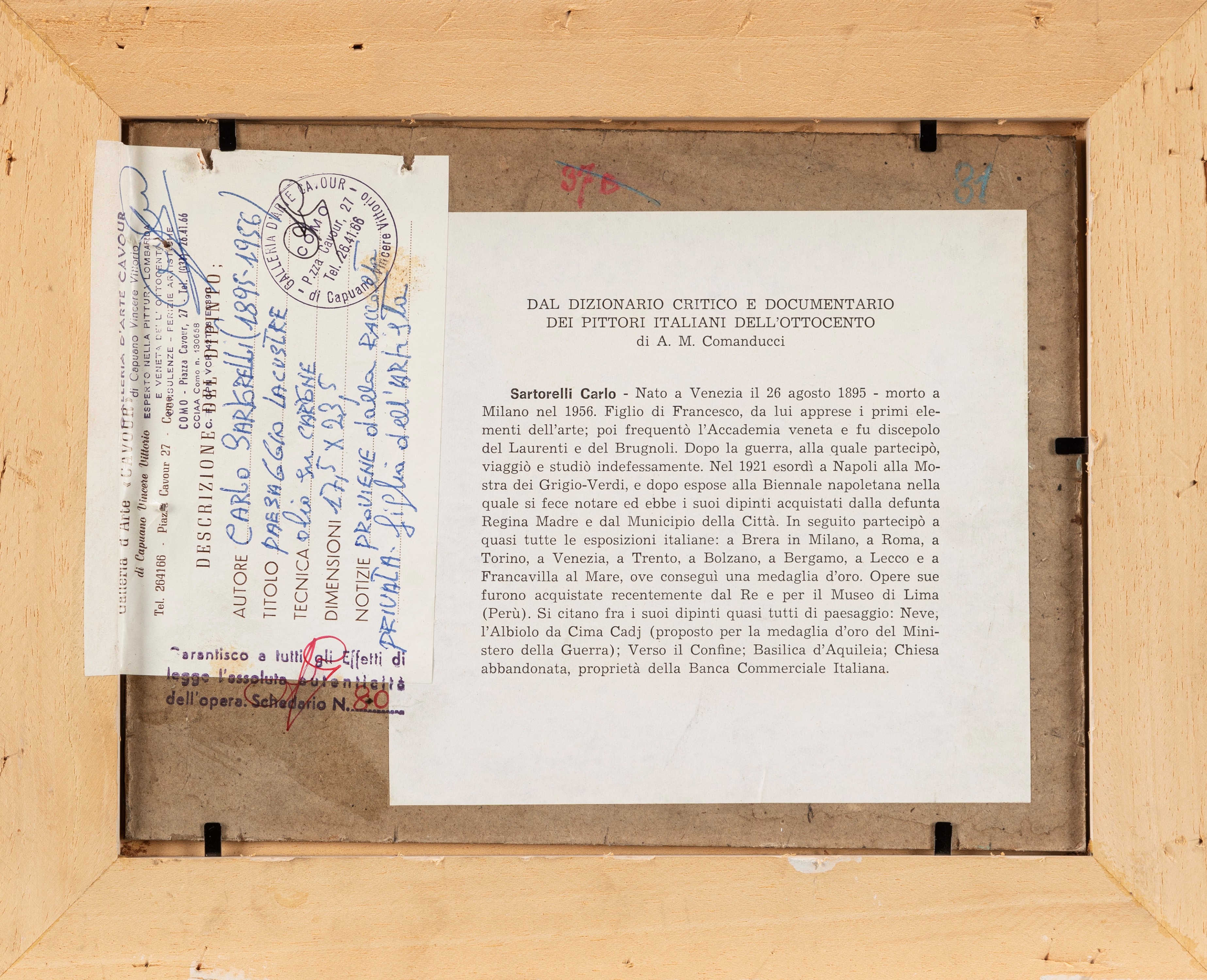 Sul retro, sul supporto, etichetta della Galleria d'Arte Cavour, Como.