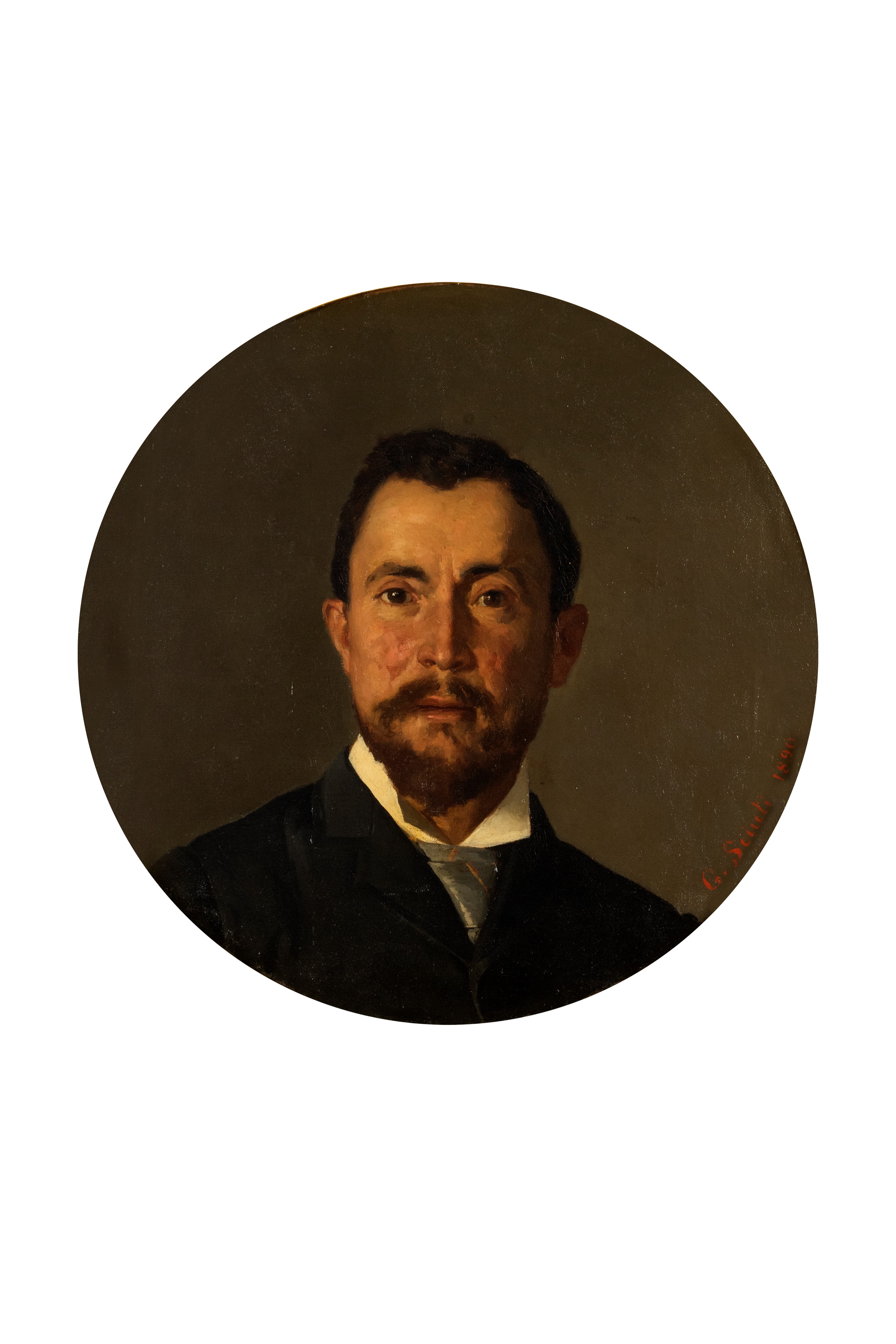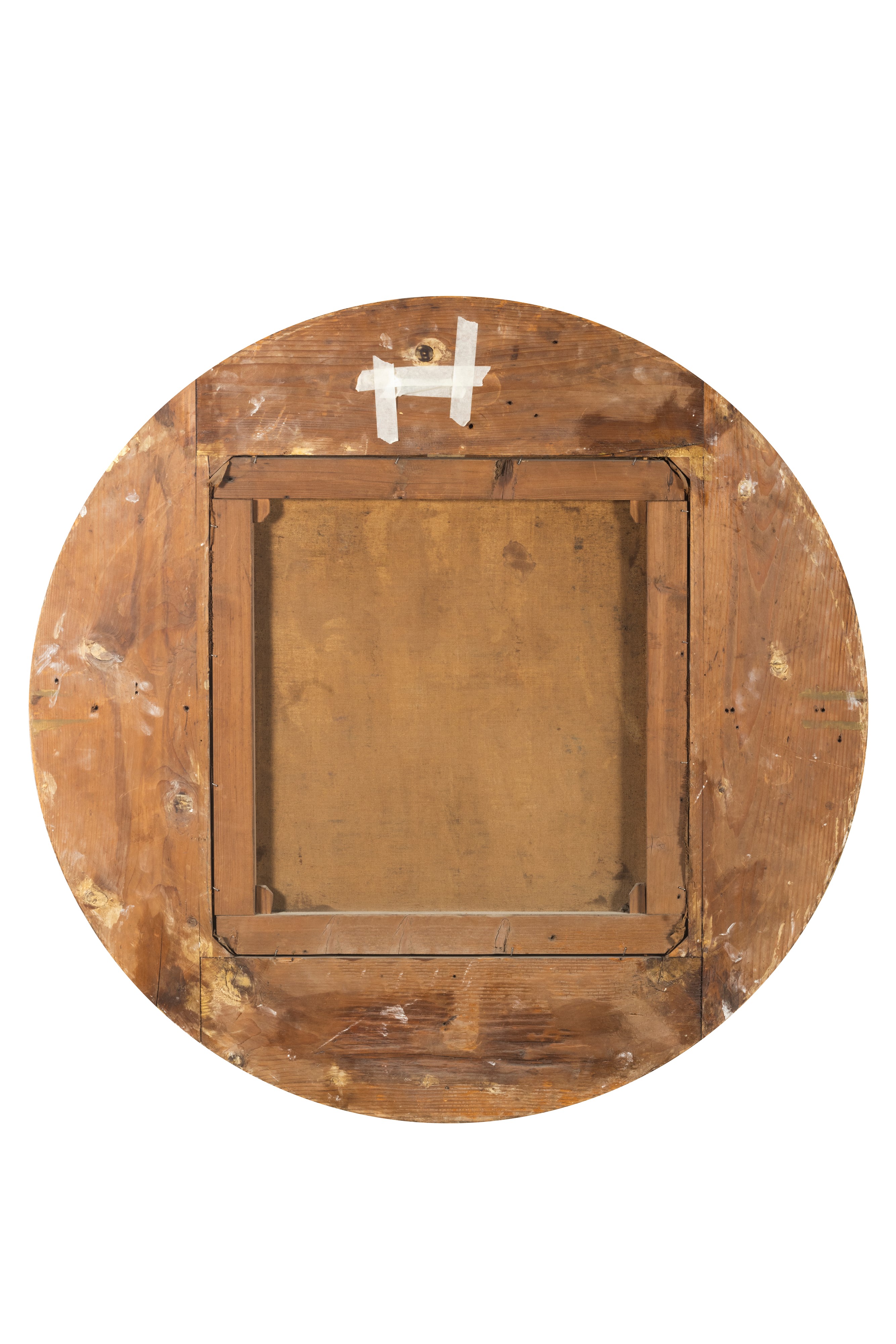 olio su tela, entro cornice tonda intagliata e dorata, cm 60 x 56,4