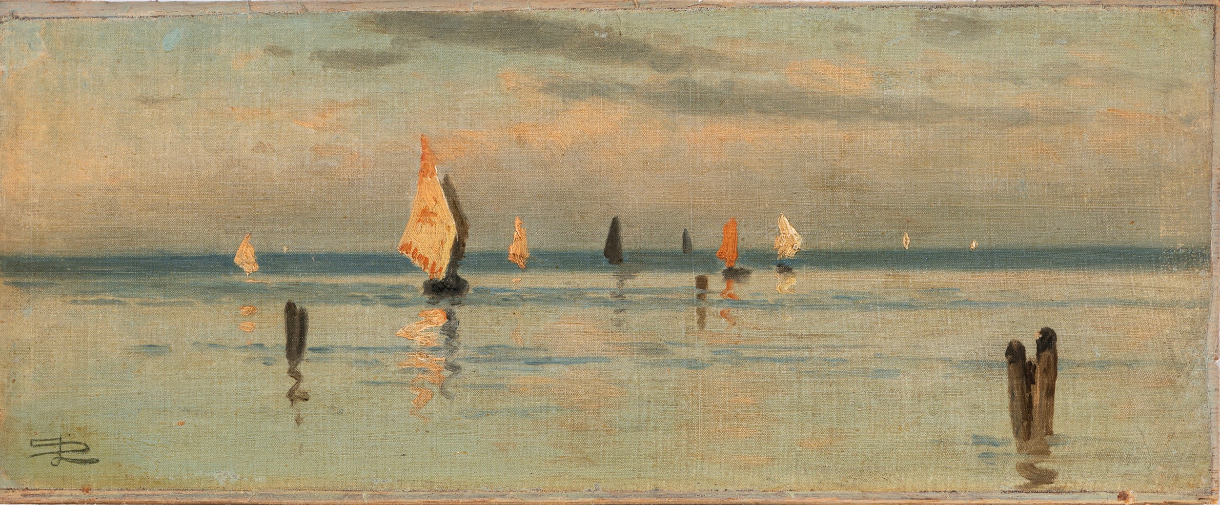 olio su tela riportata su tavola, cm 14 x 34