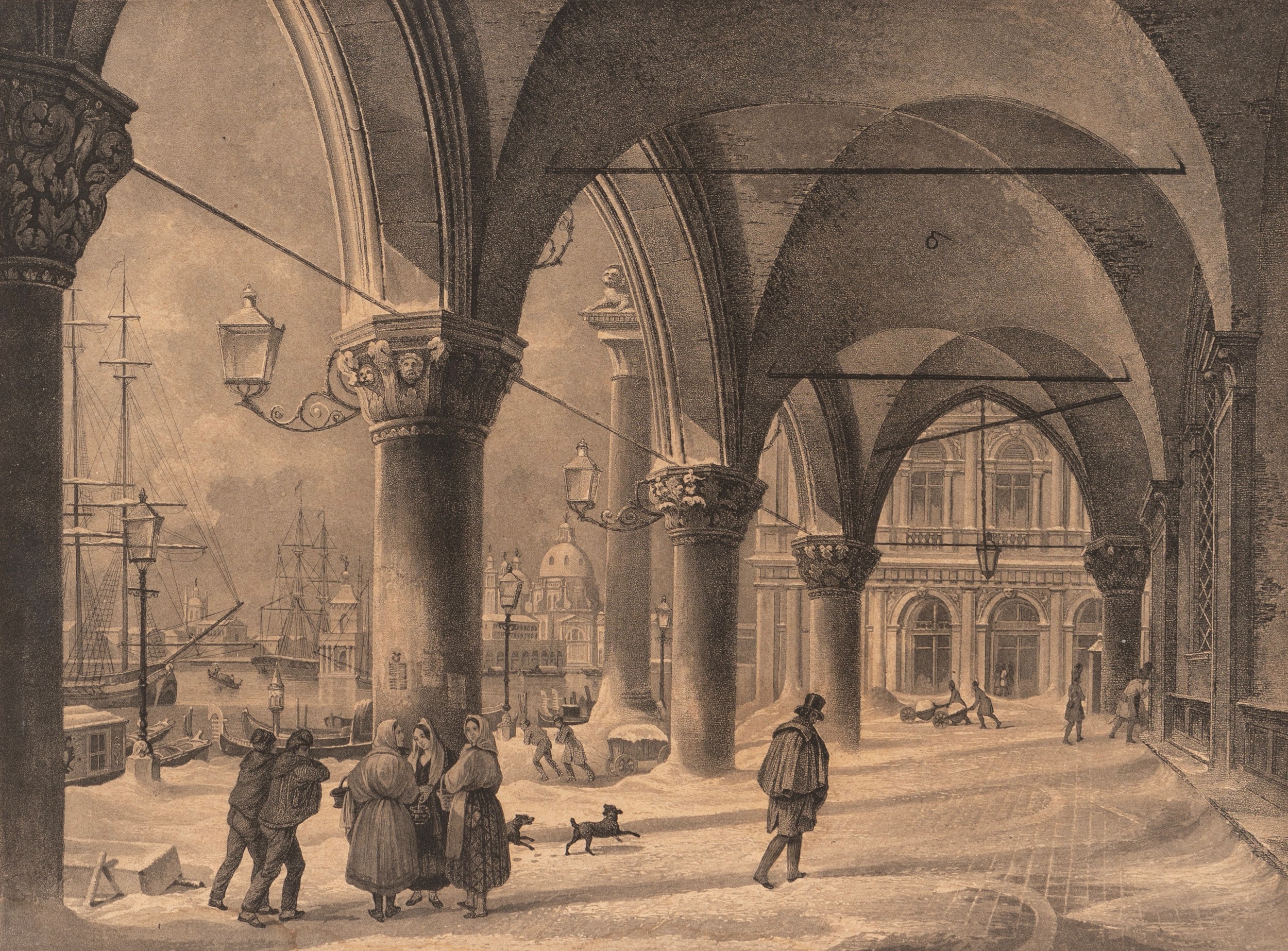 Sul retro, sul foglio, iscrizione: Borsato / Venezia molo con neve