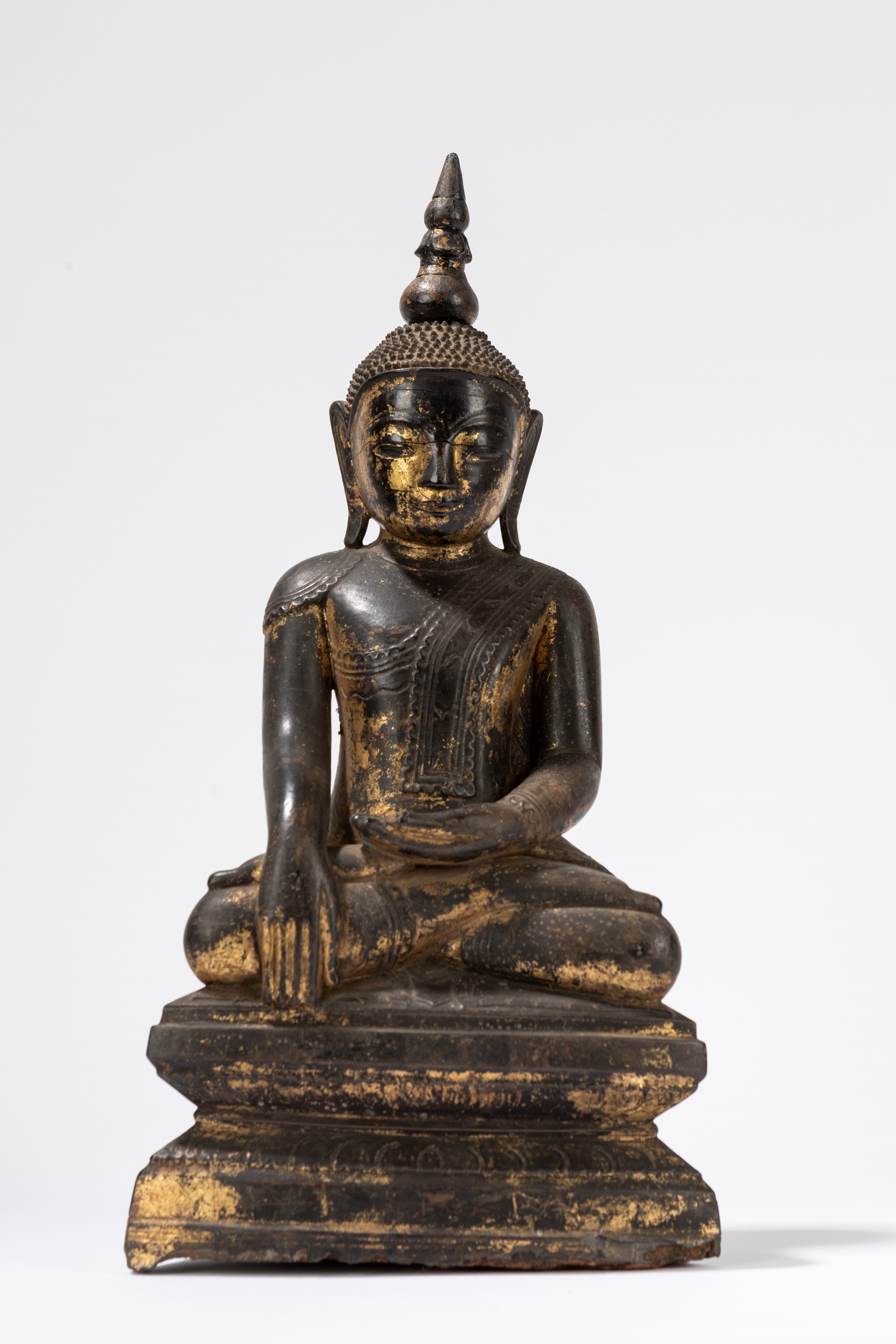 Buddha in legno parzialmente dorato. Sud Est Asia, secolo XIX