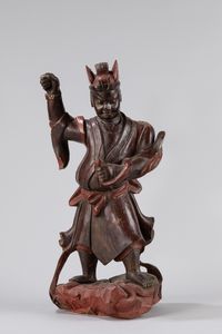 h max cm 47,5 intagliato e laccato 木凋战士,中国,十九世纪