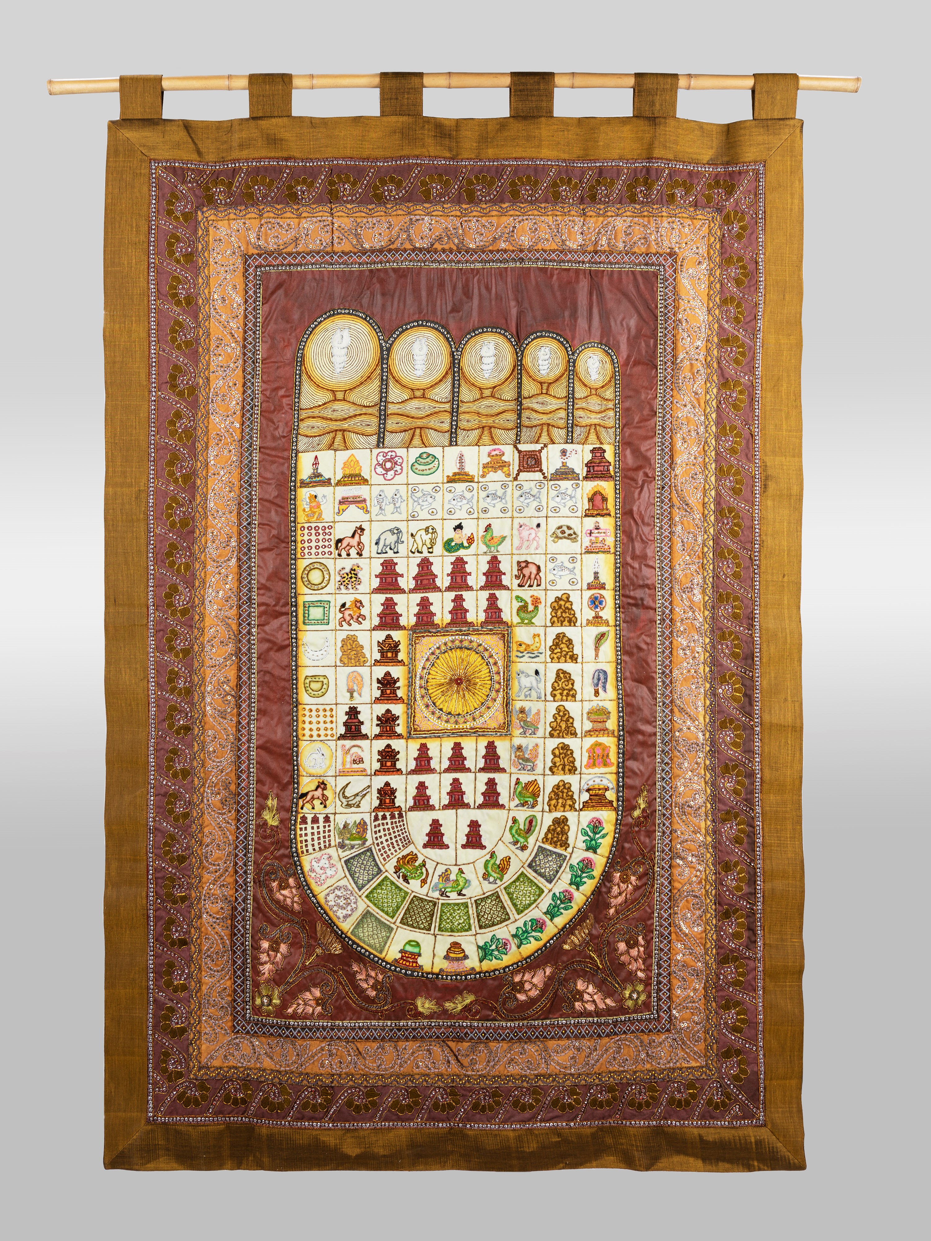 Tessuto decorato con simboli buddisti. Thailandia, secolo XX