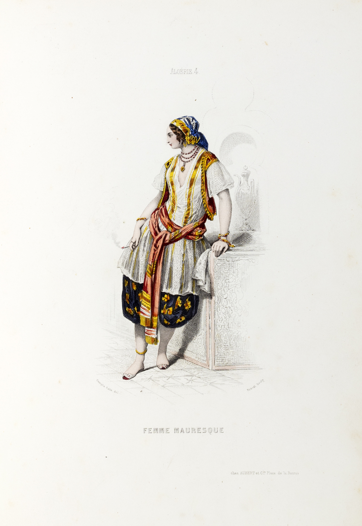 1850 Parigi, Aubert & Cie, sec. XIX, (mm. 330 x 235). Con 20 tavole incise e finemente acquarellate, eseguite sui disegni di Compte Calix, qualche macchia ai margini e fioriture, legatura in tela verde con la scritta “Album” impressa in oro al piatto anteriore, sciupata e con macchie.