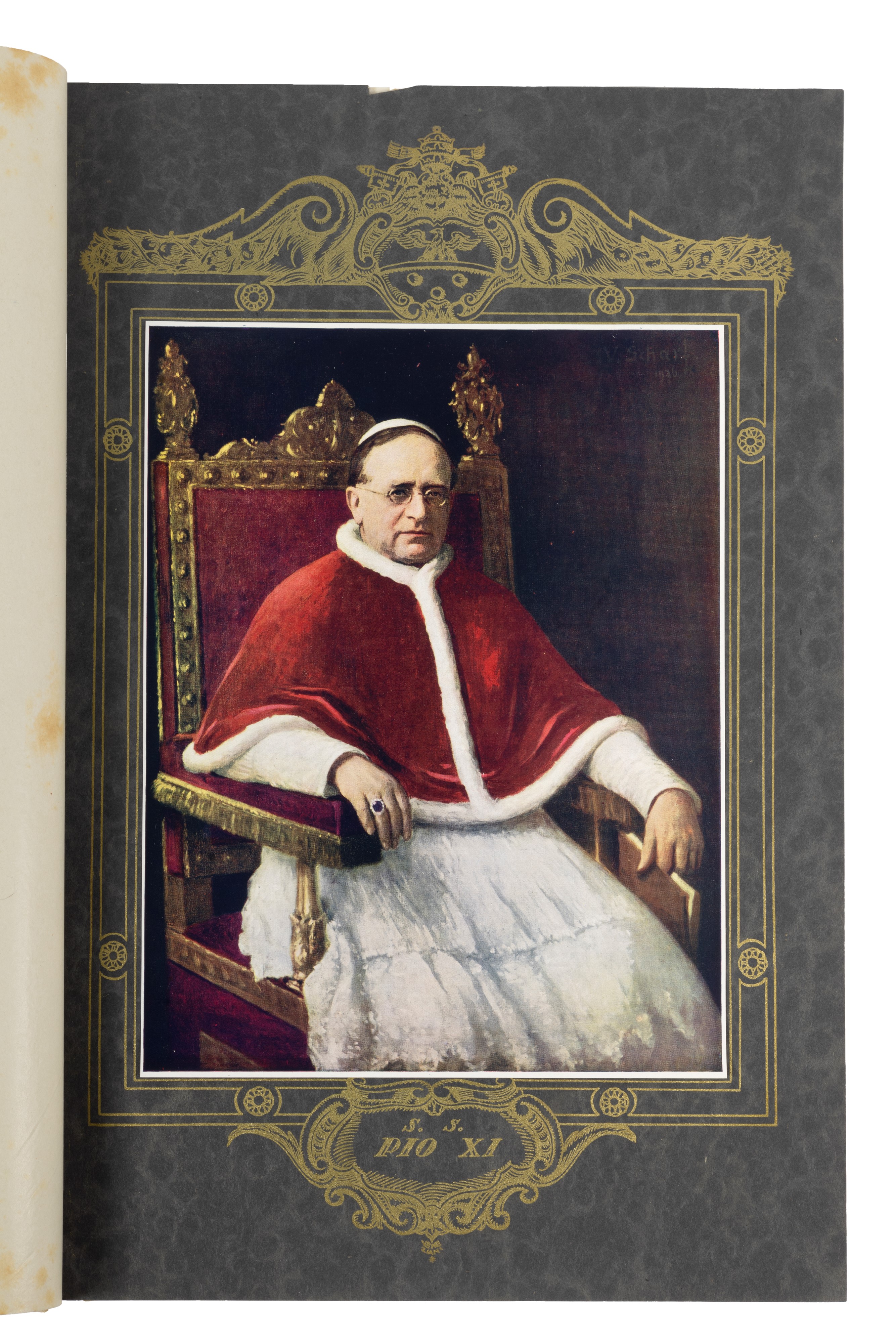 1930 Milano, EIA edizioni Italia artistica, 1930. In 2° grande. Con numerose tavole calcografiche ed acqueforti a colori e in bianco e nero, tra cui i ritratti di Pio XI, Vittorio Emanuele III, s.e. Gasparri e Benito Mussolini. sporadiche fioriture, legatura editoriale in mezza tela, titoli impressi in oro al piatto, lievi difetti.