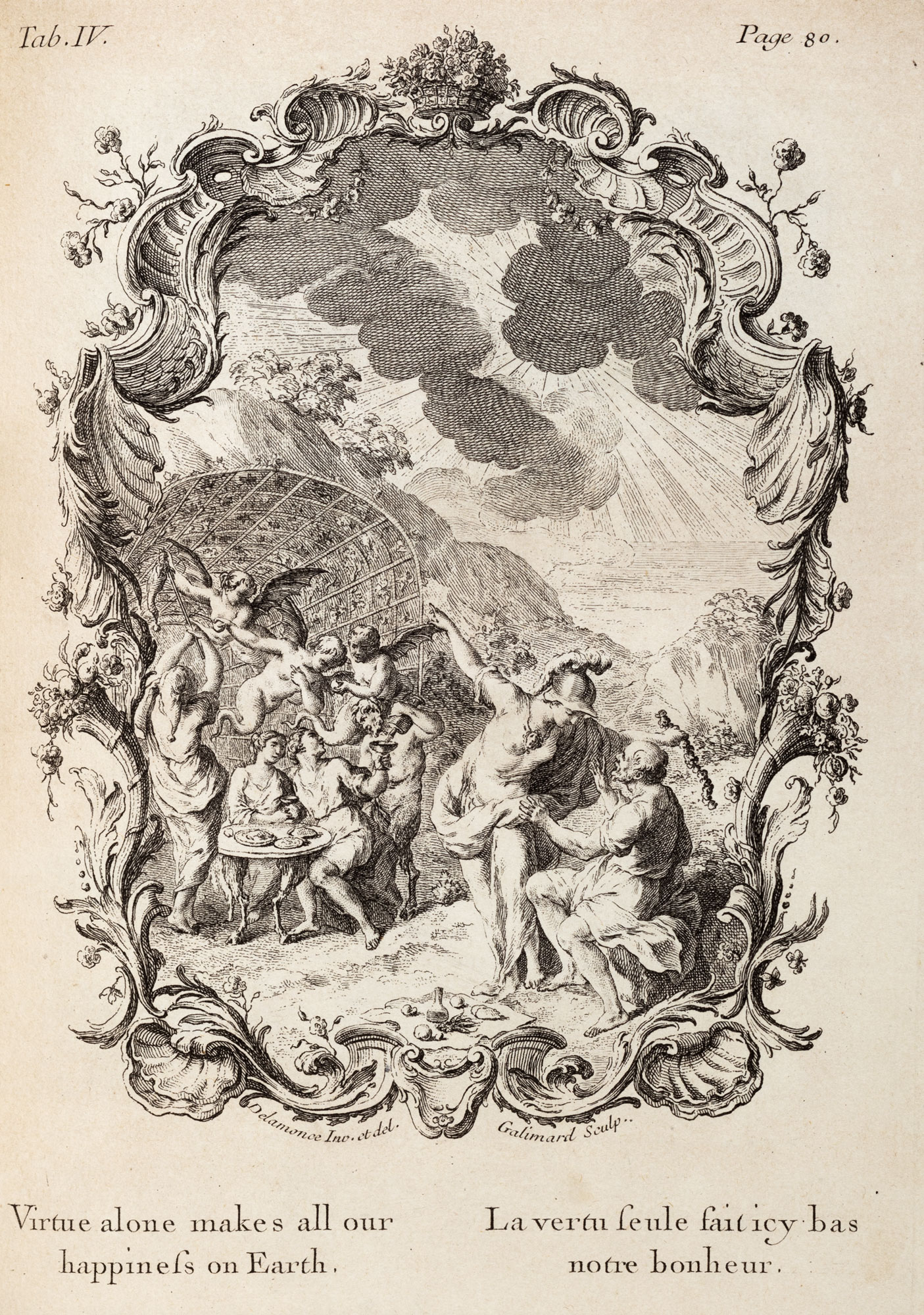 Losanna, M. Chapuis, 1762. In 4°. In antiporta ritratto del dedicatario dell'operaa piena pagina, opera di M. M. Bousquet, frontespizio stampato in caratteri rossi e neri con vignetta con ritratto dell'autore inciso da Will dopo Kneller,5 tavole a piena pagina incisi da Gallimard, numerose vignette incise da Soubeyran dopo Delamonce, lieve brunitura e qualche macchia, legatura coeva in vitello marrone, piatti inquadrati da duplice filetto in oro e piccoli festoni agli angoli.