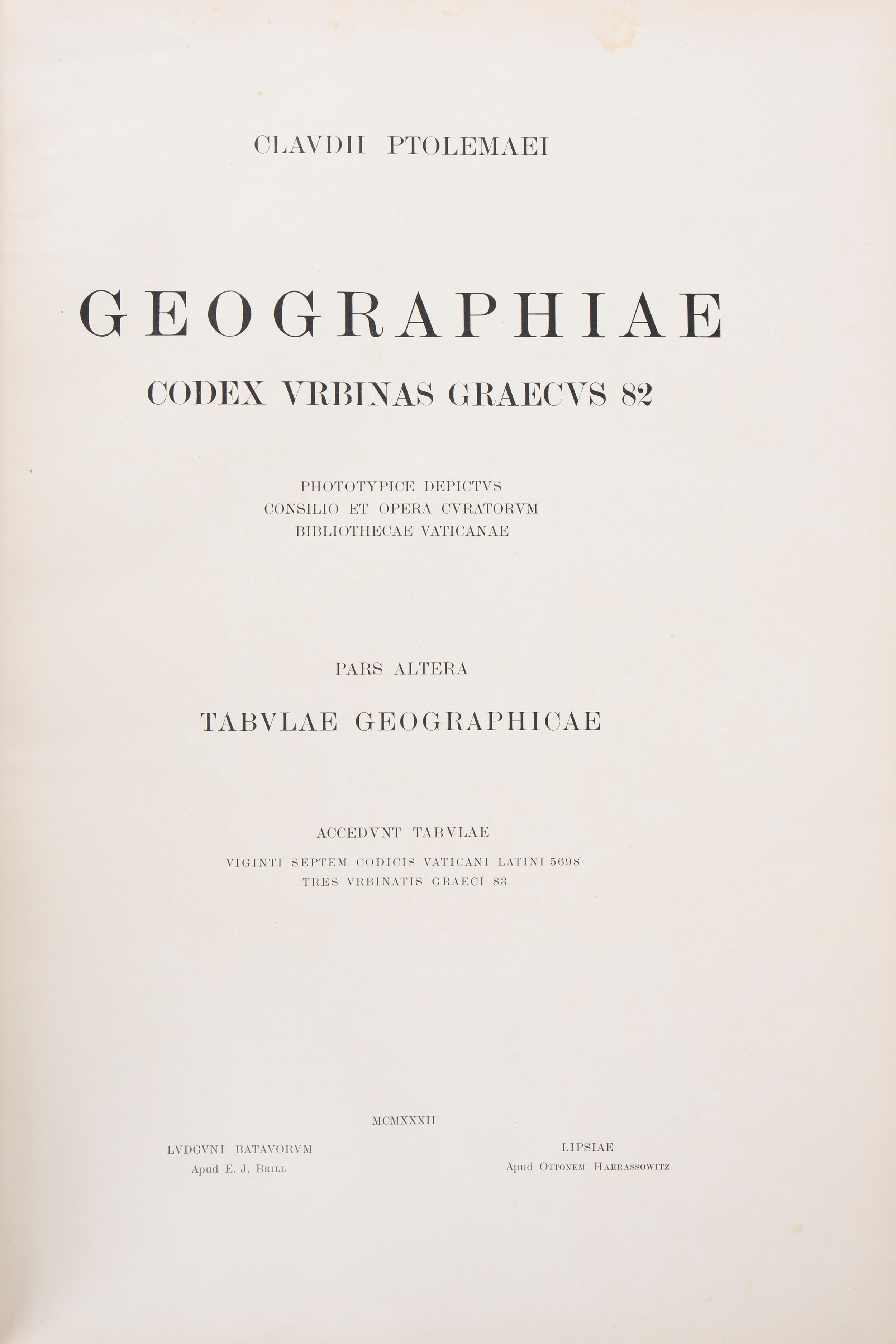 1932 Lipsia, Ottonem Harrassowitz [Torino, Officina Molfesea], 1932. 730 x 500 mm. Legatura editoriale in mezza pelle e cartone, con impressi stemmi pontifici.