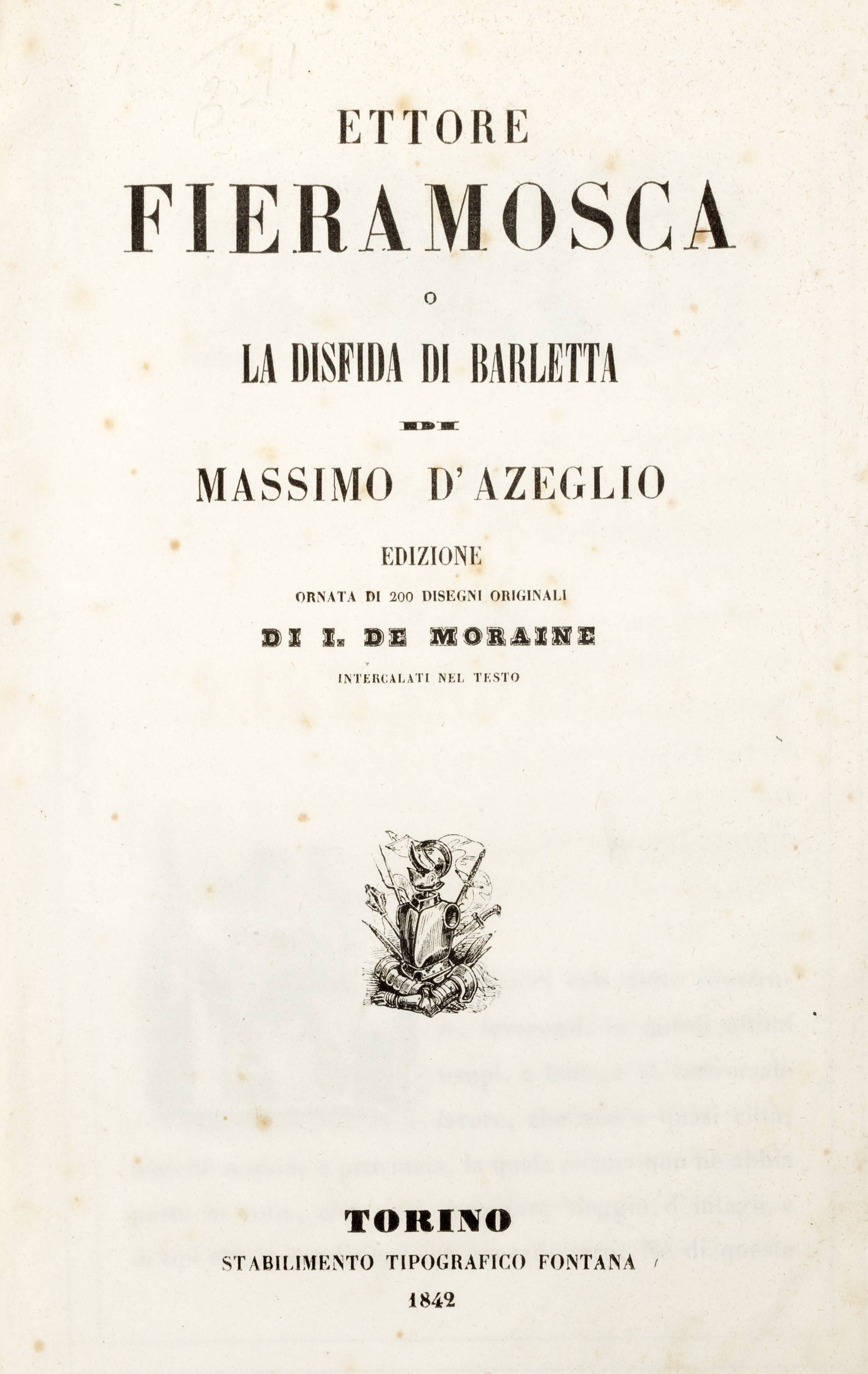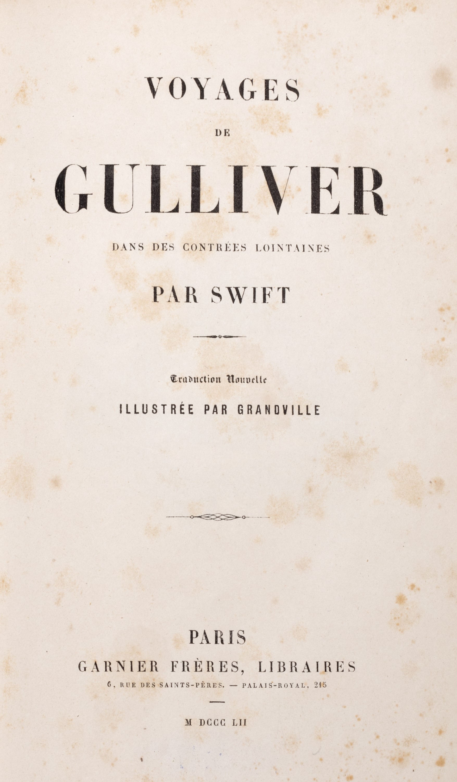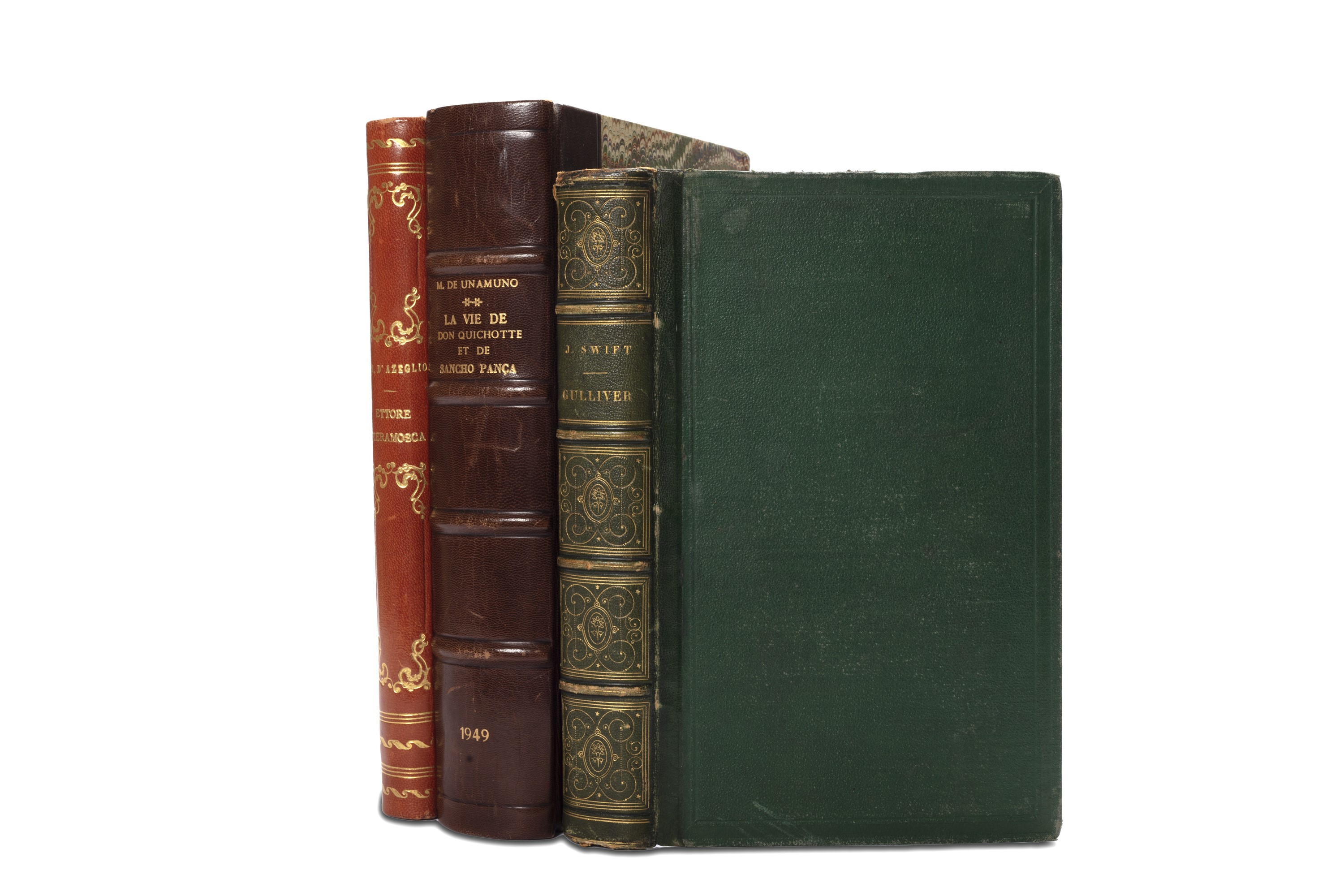 Parigi, Tallone, 1949. In 8°. Qualche rara fioritura, copertina editoriale in cartoncino entro legatura in mezzo marocchino e carta marmorizzata. Ex libris cartaceo al contropiatto. Esemplare n. 247 di 575. § Insieme nel lotto Swift, Jonathan, Voyages de Gulliver, Parigi, Garnier, 1852 e D'Azeglio, Massimo, Ettore Fieramosca o la disfida di Barletta, Torino, Stabilimento Tipografico Fontana, 1842.