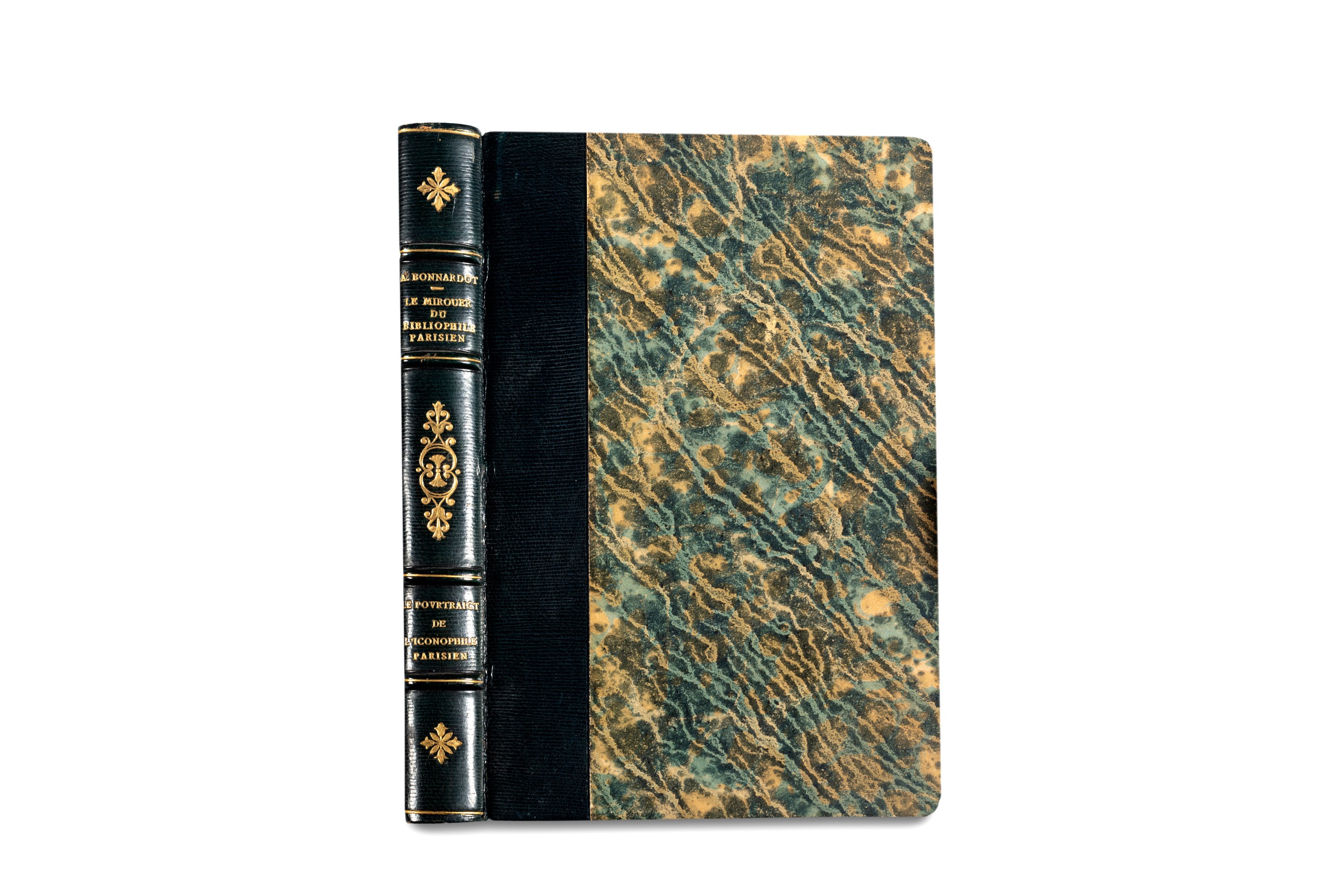 Parigi, Guiraudet et Jonaust, 1848. In 12°. Qualche arrossatura sparsa. Legato conLe pourtraict de l'iconophile parisien painct au vif, Parigi, librairie archéologique de Dumoulin,1852, timbro di possesso rosso al frontespizio, legatura in mezzo marocchino verde con al dorso autore, titoli e fregi impressi in oro. Ex Libris Guelfo Sitta al contropiatto.