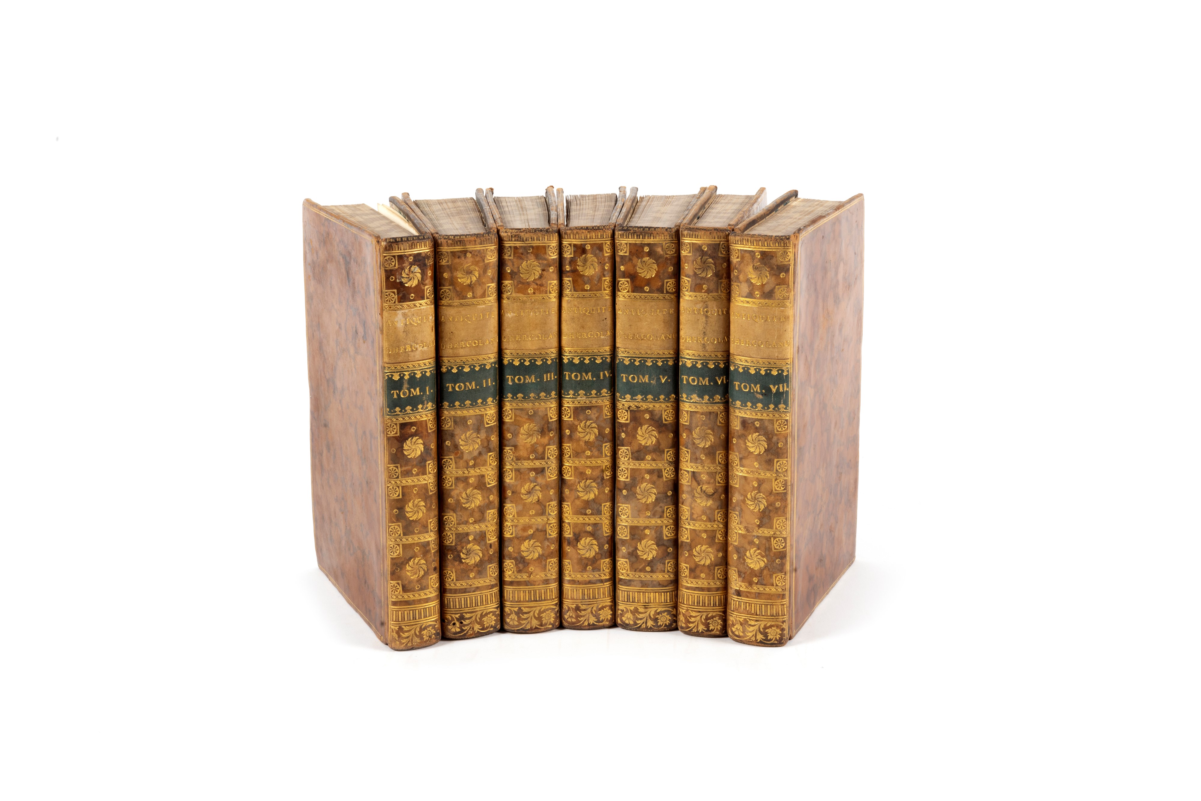 1780 Paris, David, 1780-1781. In 4°. 7 volumi (di 8 costituenti la prima serie). Frontespizi incisi, 572 incisioni fuori testo, legatura originale in vitello spugnato con cornici dorate ai piatti e decorazioni in oro al dorso, tagli a spruzzo.