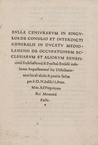 Bulla censurarum in singulos de consilio et interdicti generalis in ducatu Mediolanensi [..]
