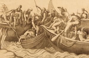 1600 Insieme di 16 incisioni basate su invenzioni di Raffaello, vari incisori, epoche e misure, alcune in tiratura [..]