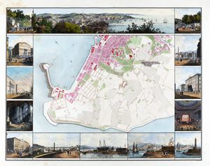 1830 Pianta topografica incisa in rame [sec. XIX] su 18 carte applicate su tela marrone più volte ripiegata [..]