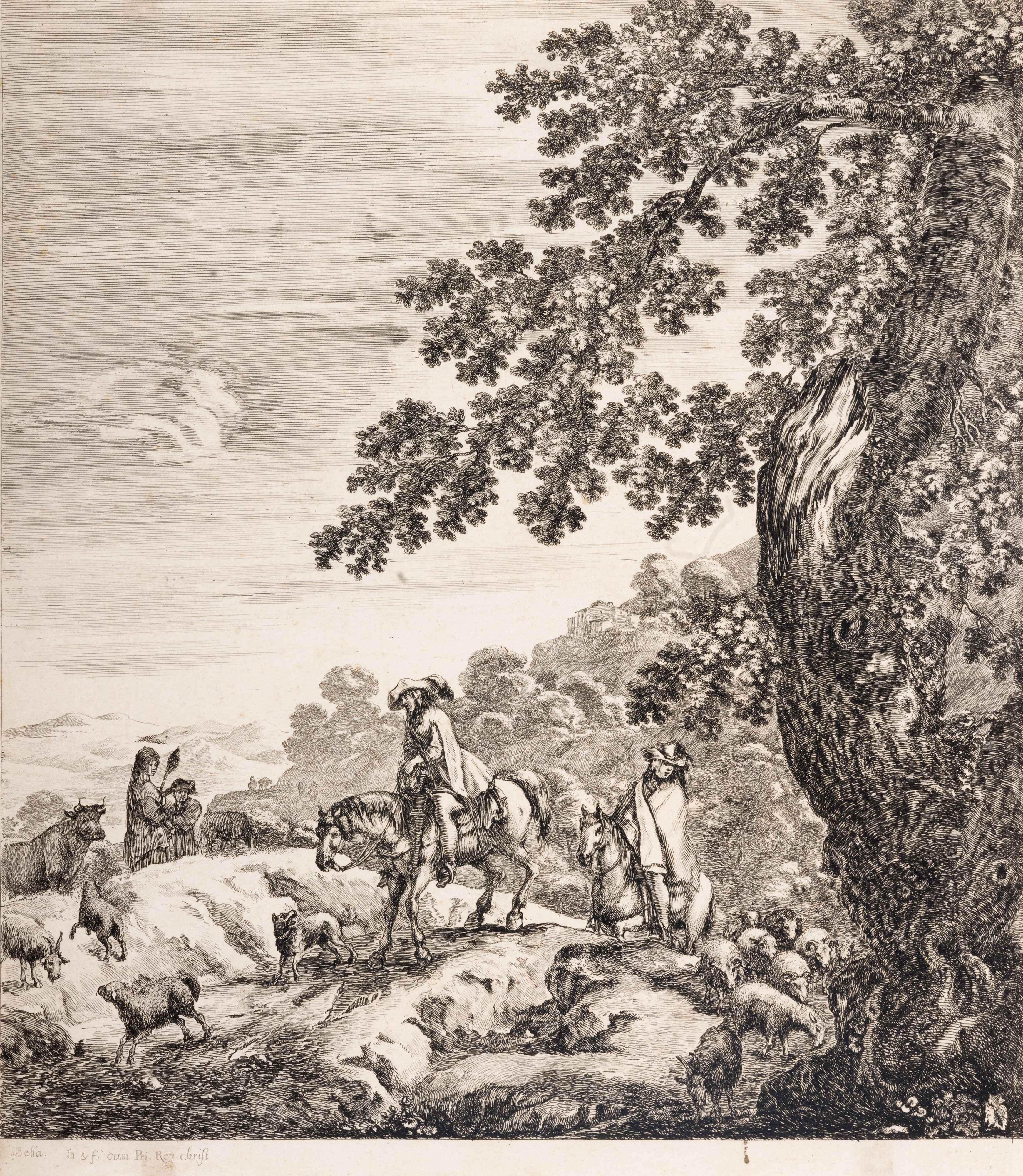 Stefano Della Bella : Paesaggio con duo uomini a cavallo  - Asta Libri, Autografi e Stampe - Associazione Nazionale - Case d'Asta italiane