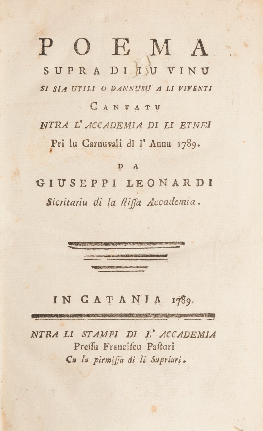 Poema supra di lu vinu si sia utili o dannusu a li viventi cantatu ntra l'Accademia [..]