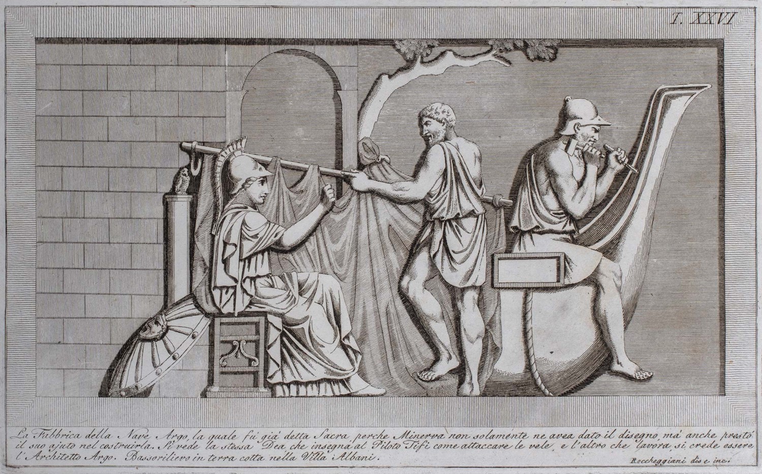 1804 [Roma], Giacomo Raffaelli in Piazza di Spagna, [1804]. In 4° oblungo. 2 voll. Ciascun volume con frontespizio inciso e 100 tavole numerate I- C, al di sotto della parte incisa la legenda, firmate in lastra dall'autore in basso a destra, in fine 10 pagine con il testo esplicativo delle tavole e l'indice, leggere fioriture ed arrossature su qualche carta, lievi lacune ai margini di poche carte, legatura coeva in mezza pergamena, al dorso tassello in marocchino verde con autore e titolo impressi in oro, mancanze ai piatti.