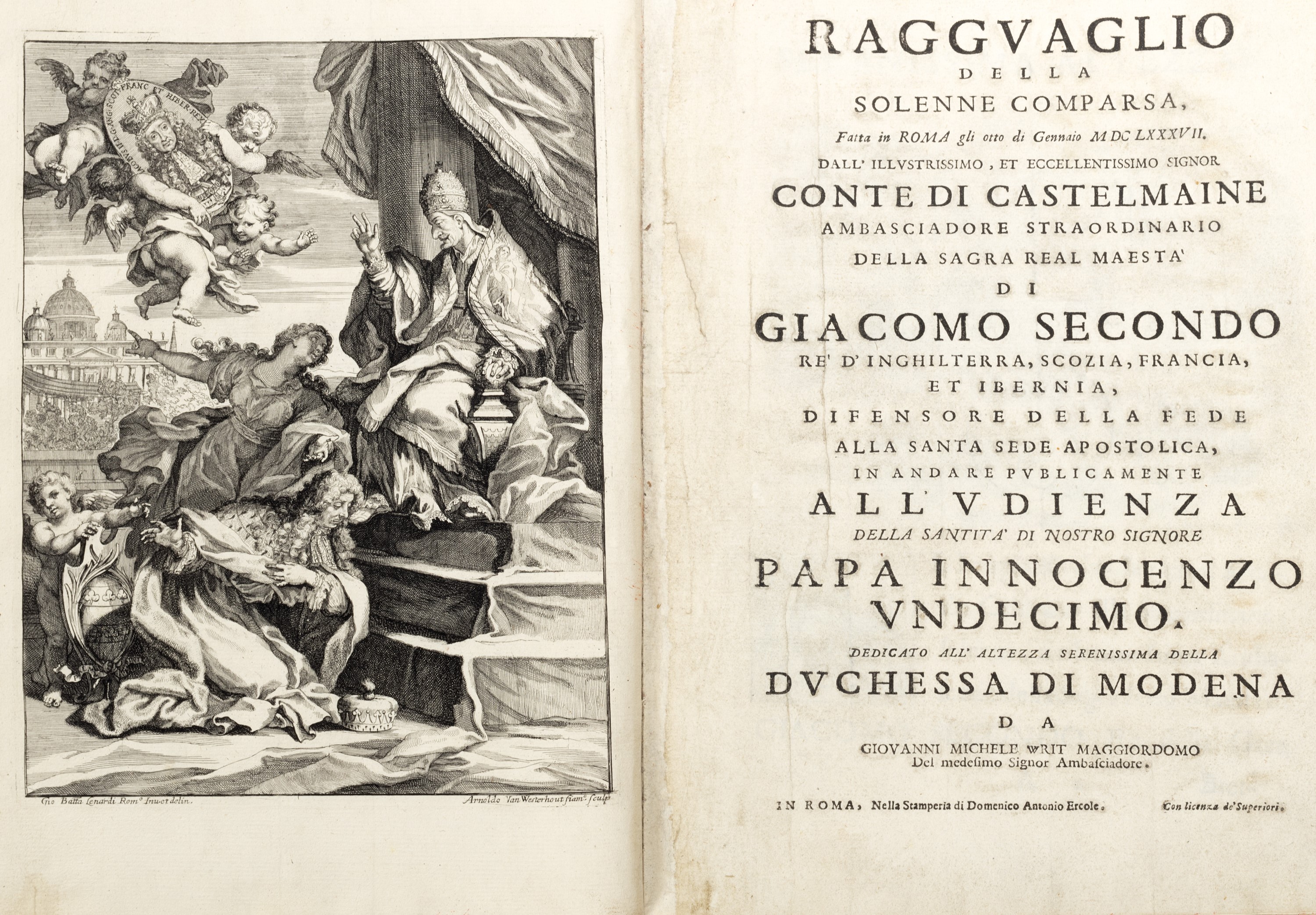 1687 In Roma, Domenico Antonio Ercole, [1687]. In folio. Antiporta calcografica, grande vignetta e iniziali calcografiche alla carta A2, 15 tavole incise numerate e firmate di cui una ripiegata più volte, esemplare lavato, restauri, taglio restaurato alla tavola ripiegata, mancante la carta M3 (pp. 91-92, secondo SBN, erroneamente segnata “M2”), legatura del sec. XIX con eleganti impressioni a secco, lievi difetti, entro custodia in pelle con tassello al dorso, segni di usura, qualche spellatura e graffio. Ex libris cartaceo al contropiatto.