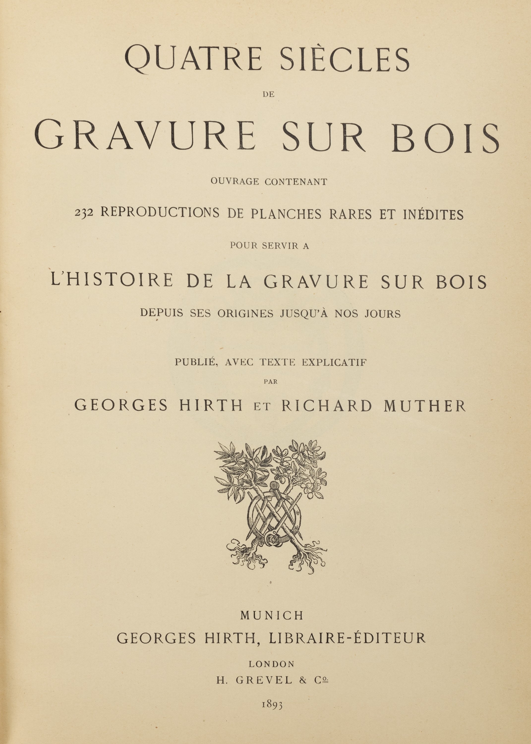 Milano, Electa, 1964. In 2°. Con numerose riproduzioni a colori, legatura in cartoncino rigido entro astuccio, lievi difetti. § Quatre siecles de gravure sur bois, Monaco e Londra, Georges Hirt, H. Grevel & co., 1893. In 2°. Con 232 riproduzioni di tavole in bianco e nero, legatura in mezza pelle con angoli. § Insieme nel lotto Bertarelli, Achille, L'imagerie populaire italienne, Parigi, Editions Duchartre & Van Buggenhovdt, [1929].