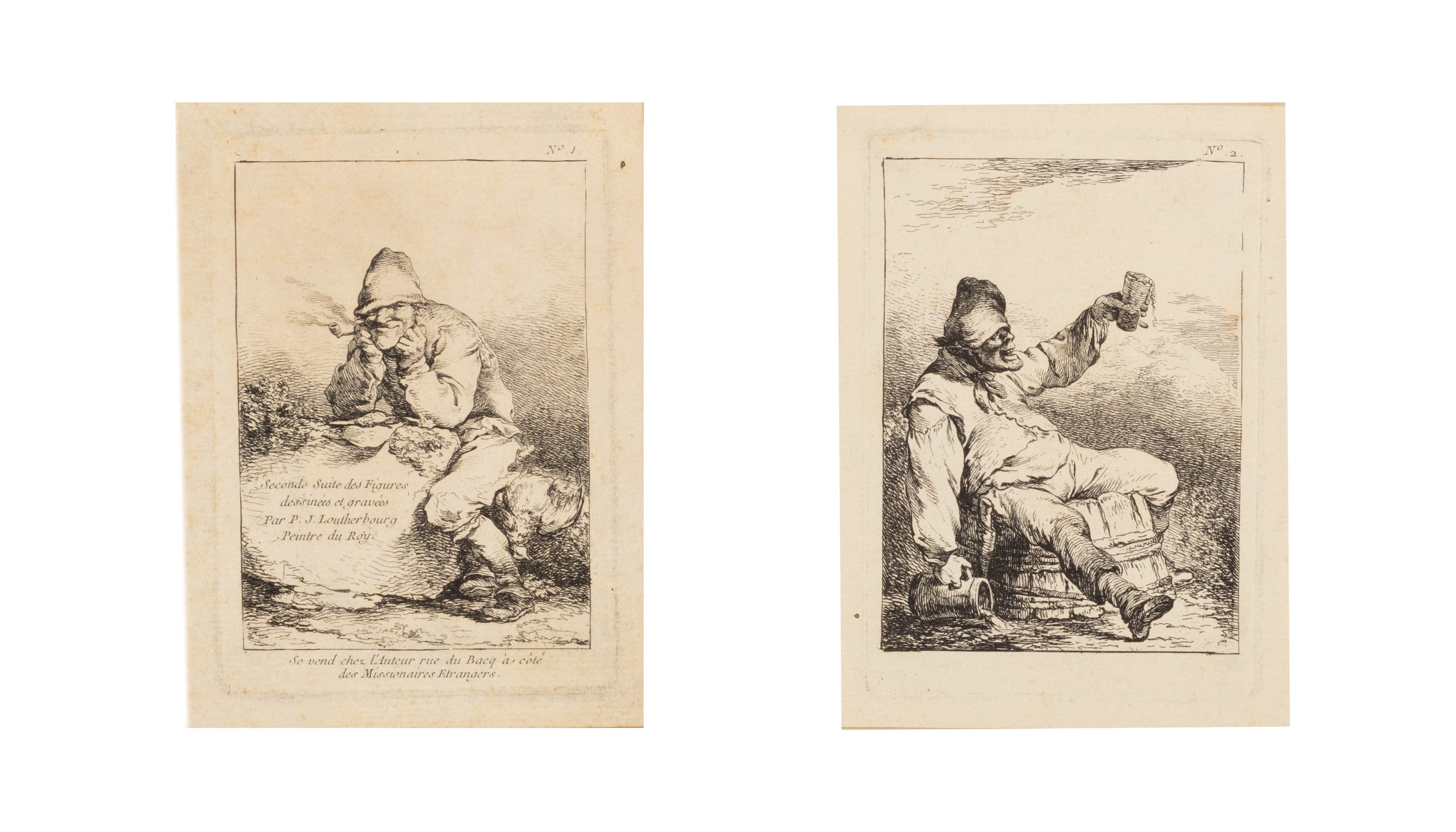 1700 Due suite ciascuna con 6 incisioni incollate su cartoncino posteriore, numerate 1- 6 , mm. 140x 100, incise su rame, lievi difetti.