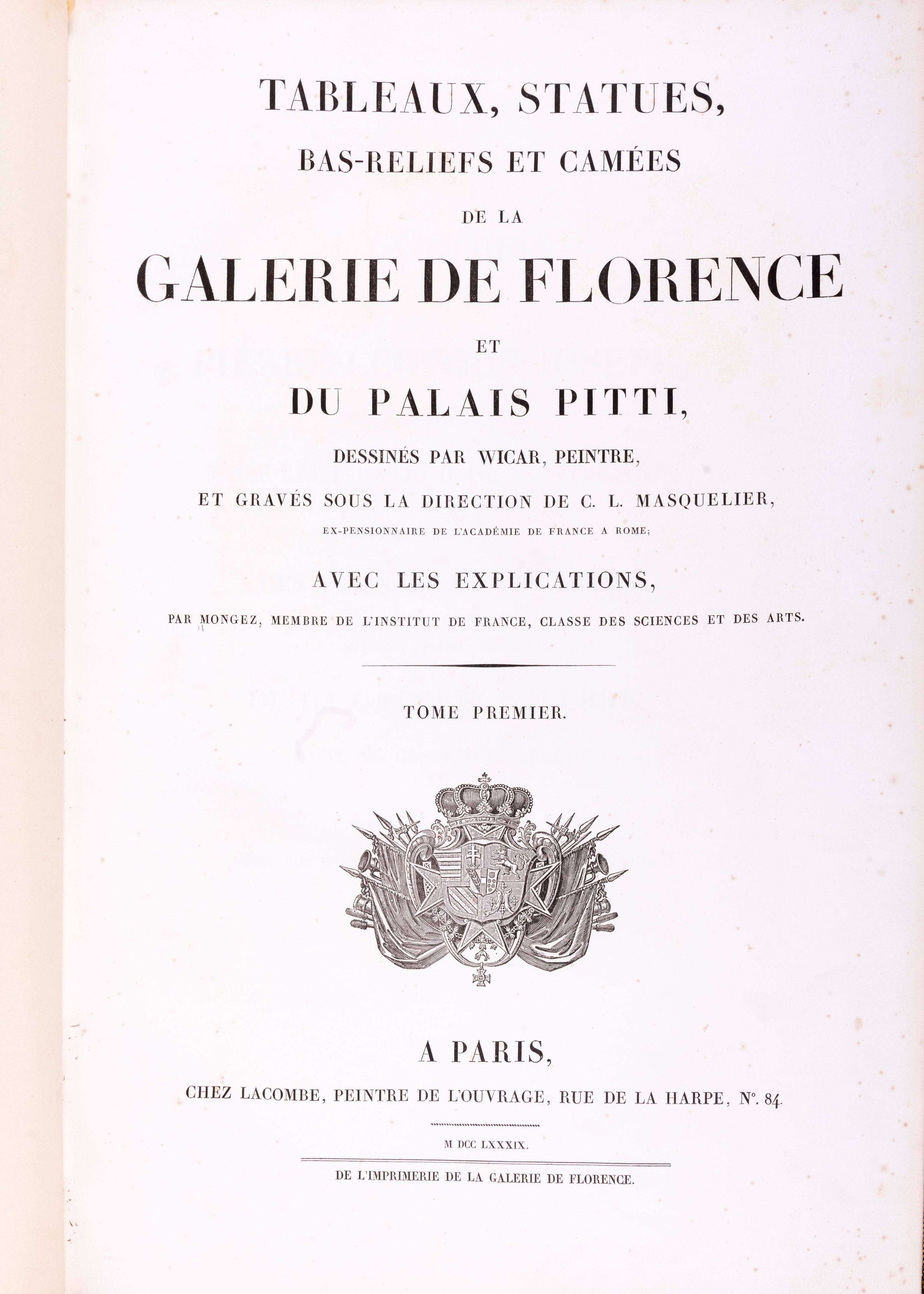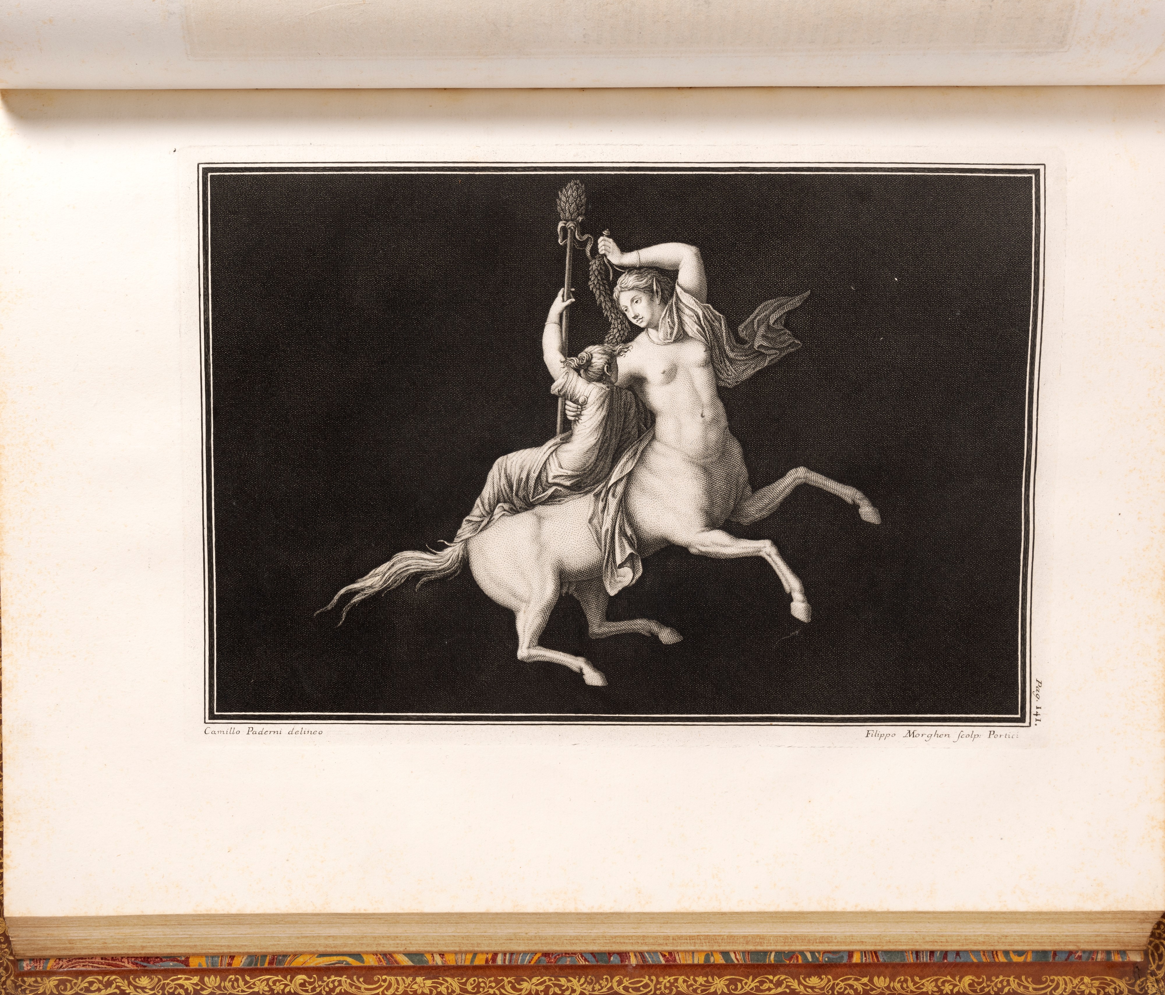 1789 Parigi, chez Lacombe - chez Masquelier, 1789-1814. In 2°. 528 x 350 mm. 4 voll. Centinaia di incisioni in rame, disegnate da Wicar e incise sotto la direzione di Masquelier, marginali fioriture, legatura coeva in marocchino color melanzana, dorsi sciupati. Ex libris al contropiatto di William Albert Burnett.