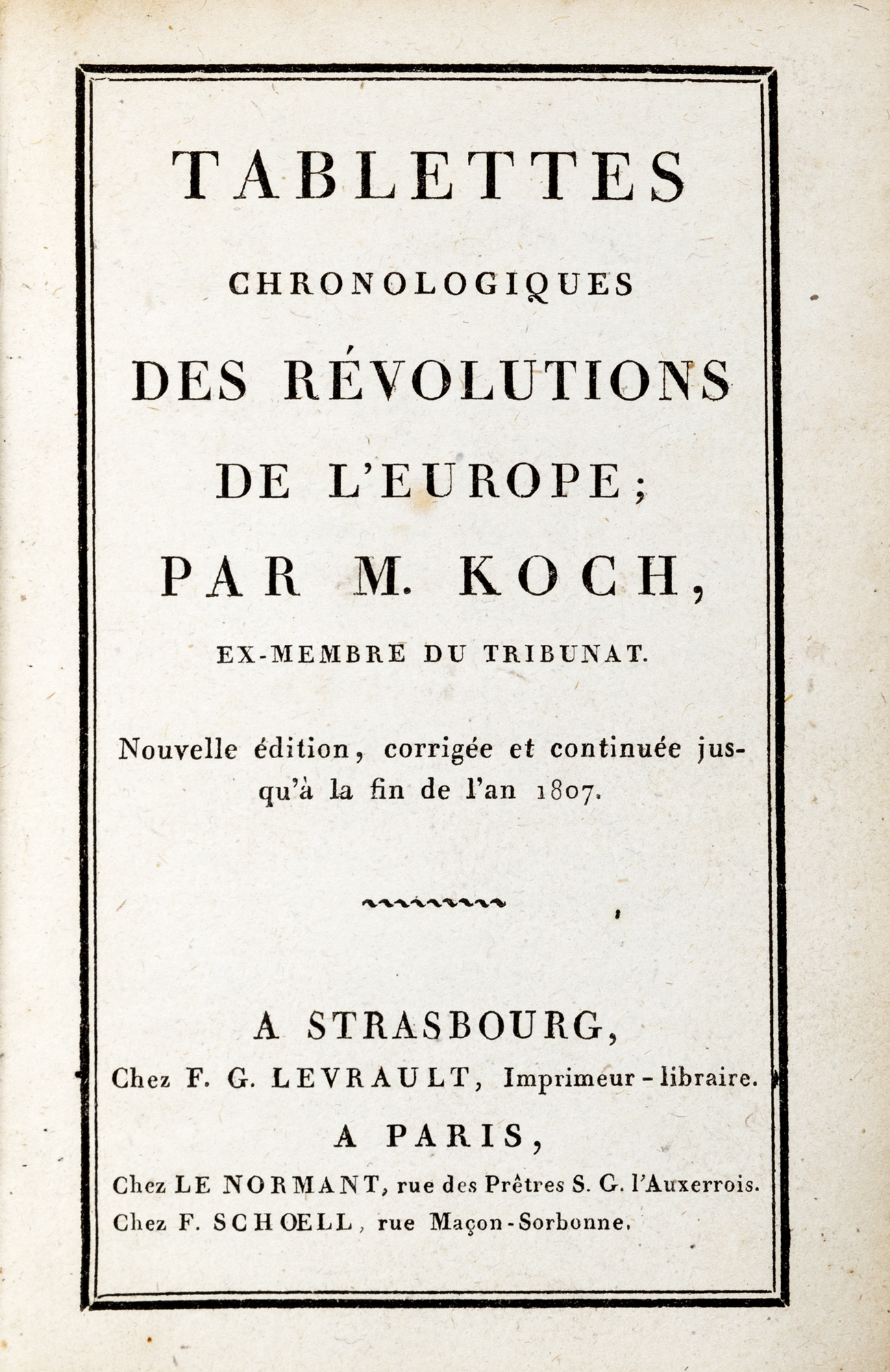 1807 Strasbourgo, freres Levrault,Parigi Le Normant et Schoell, s.d. ma 1807. In 8°. Esemplare con testo inquadrato da cornice di filetto, legatura in cartonato marrone, al dorso tassello in pelle rossa con titolo in oro.