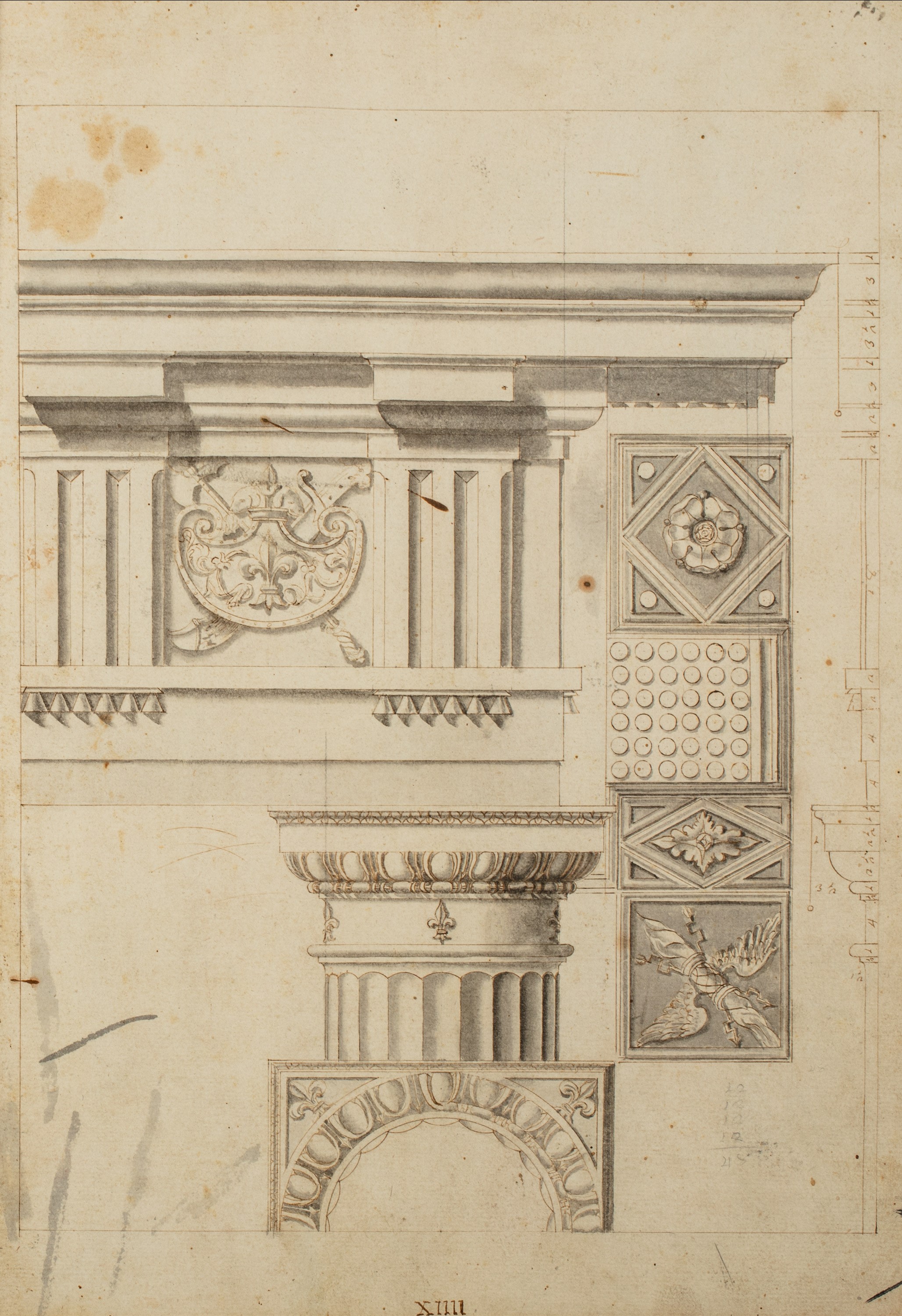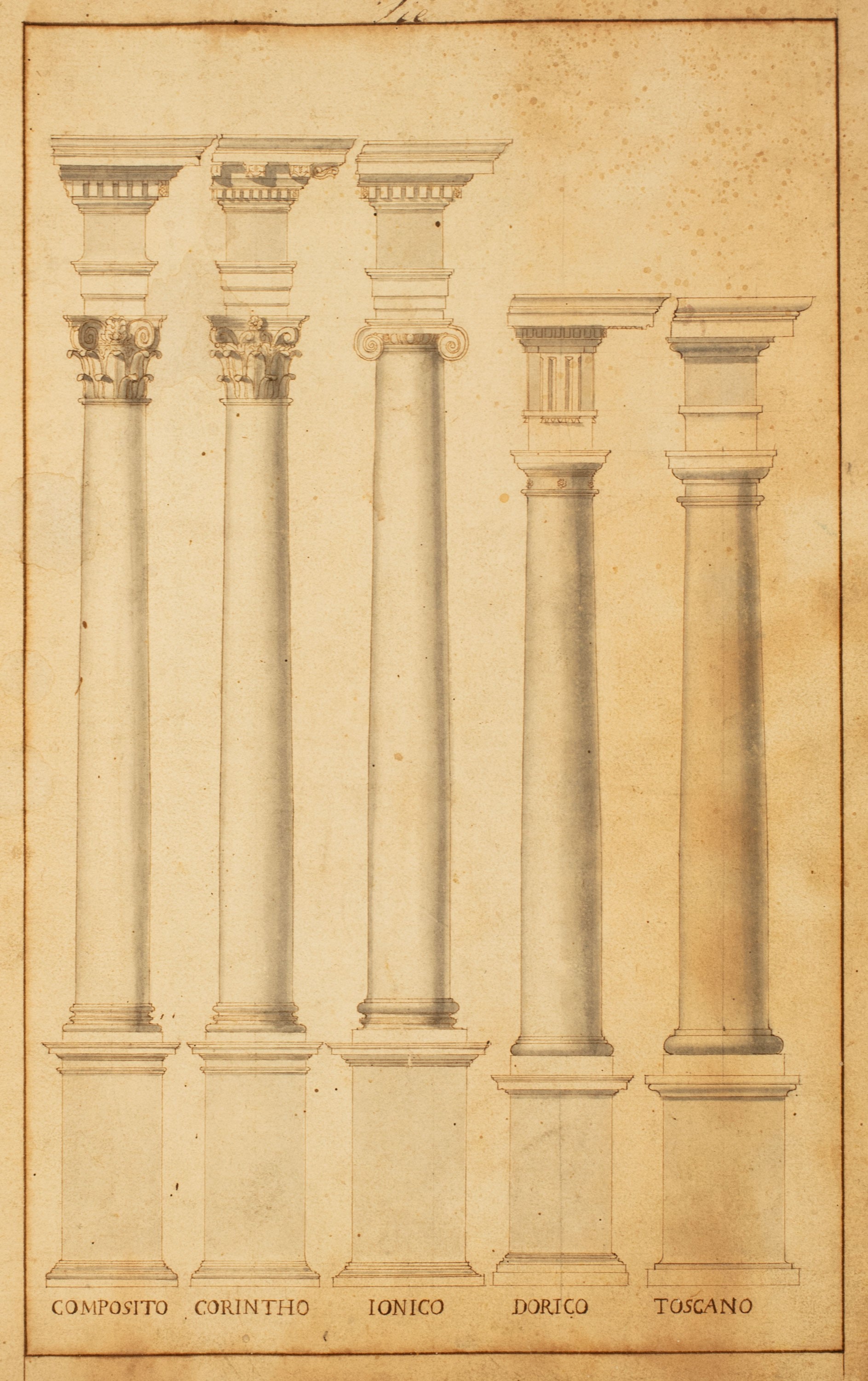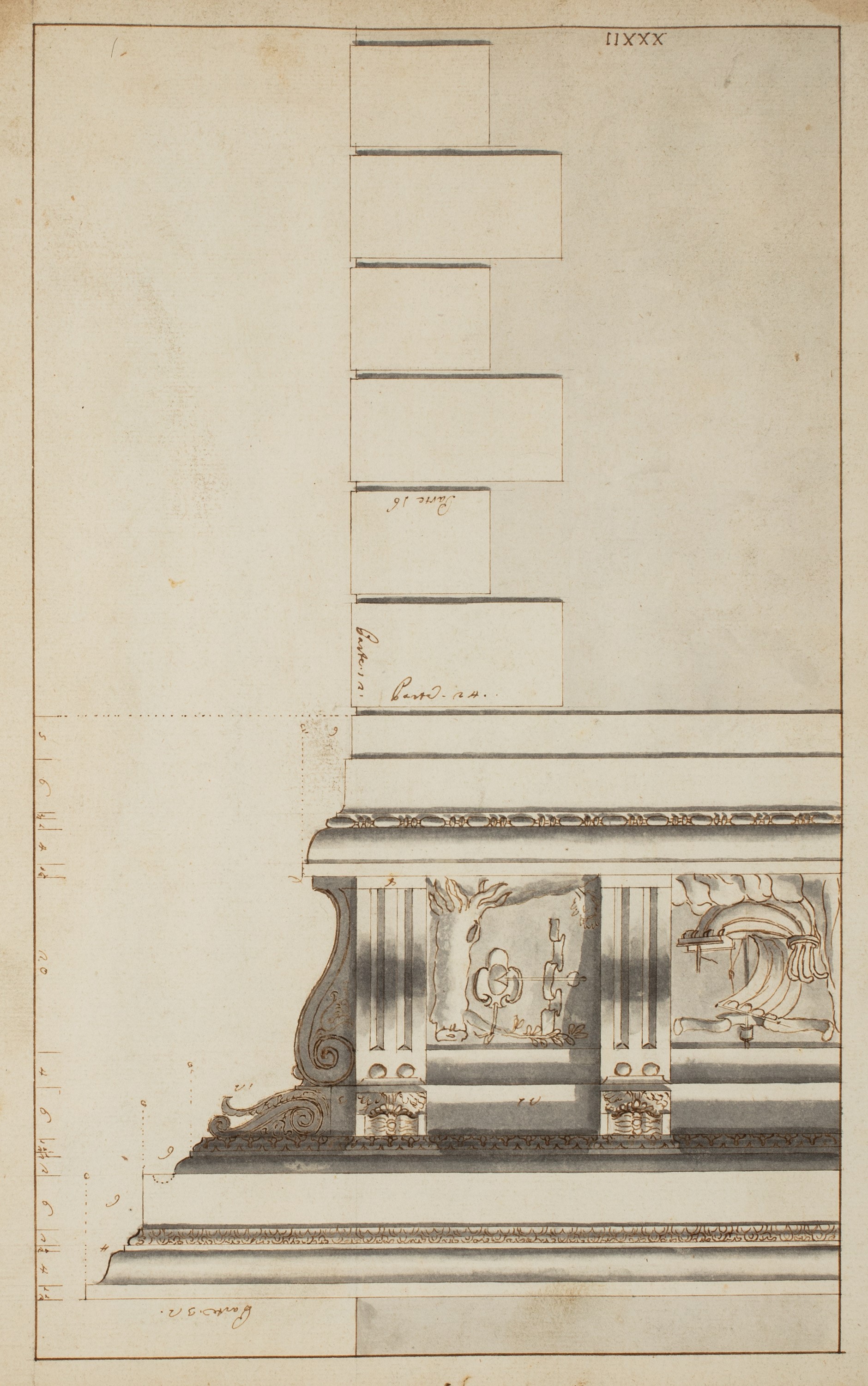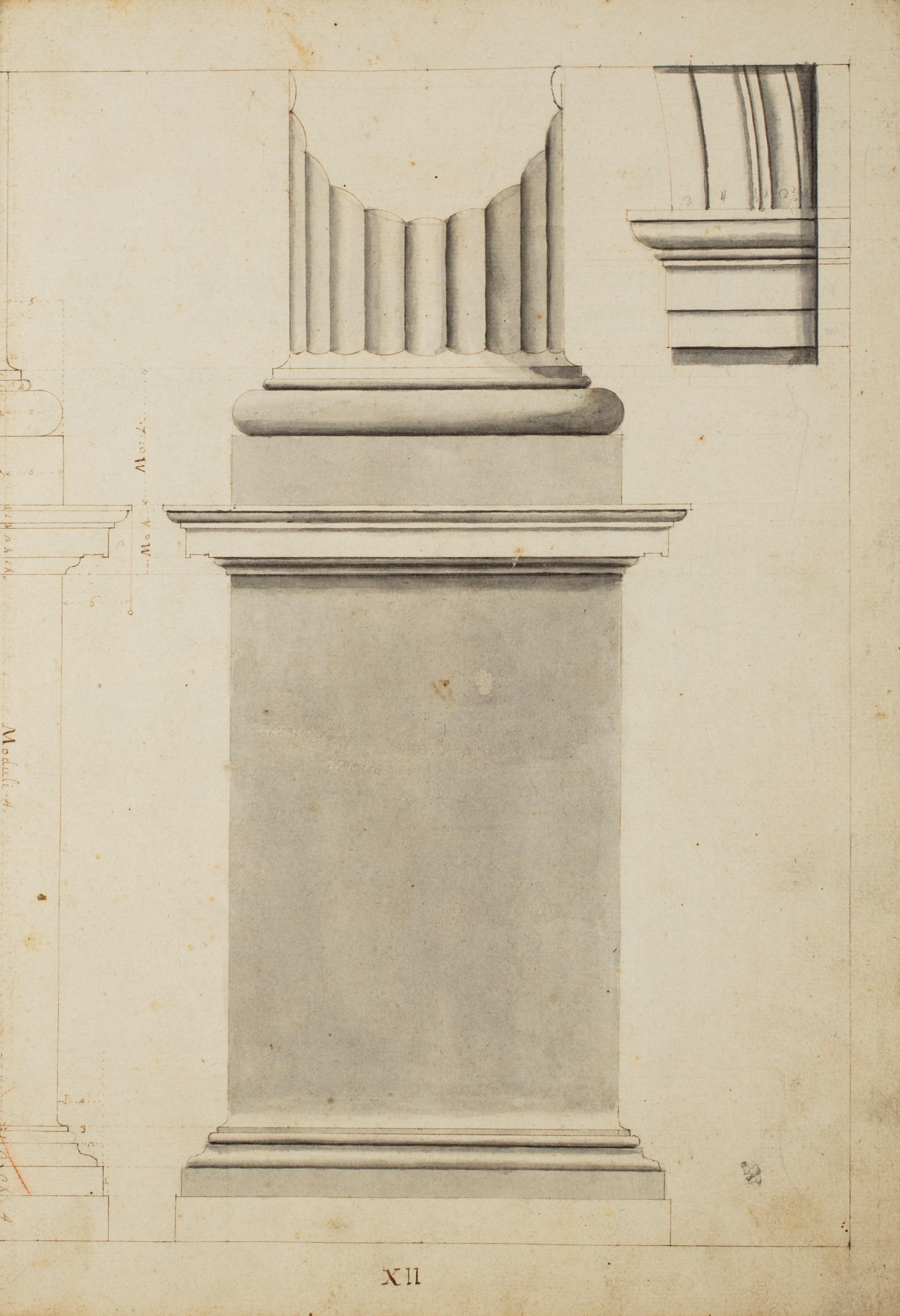 1700 Album, del sec.XVIII , composto di 31 tavole rilegate insieme, disegnate e con leggera coloritura in grigio, mm. 380 x 280, fascicoli lenti, qualche macchia, senza legatura.