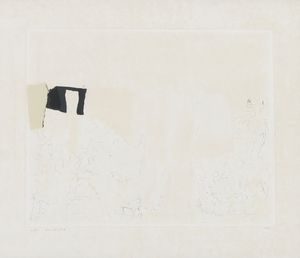 Litografia, collage di stoffa e filo su cartoncino, cm. 43x53,5, in teca di plexiglas es. 115/200. 2015 Firma [..]