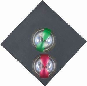 Acrilico su linoleum, cm. 60x25 in teca di plexiglas 1997 Sul verso: firma e data.