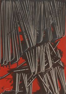Serigrafia a colori su cartoncino, cm. 56x72 in teca di plexiglas 1965 Firma e tiratura in basso a destra. [..]