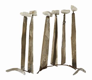 Scultura in acciaio e pietra, assemblaggio, h. cm. 27