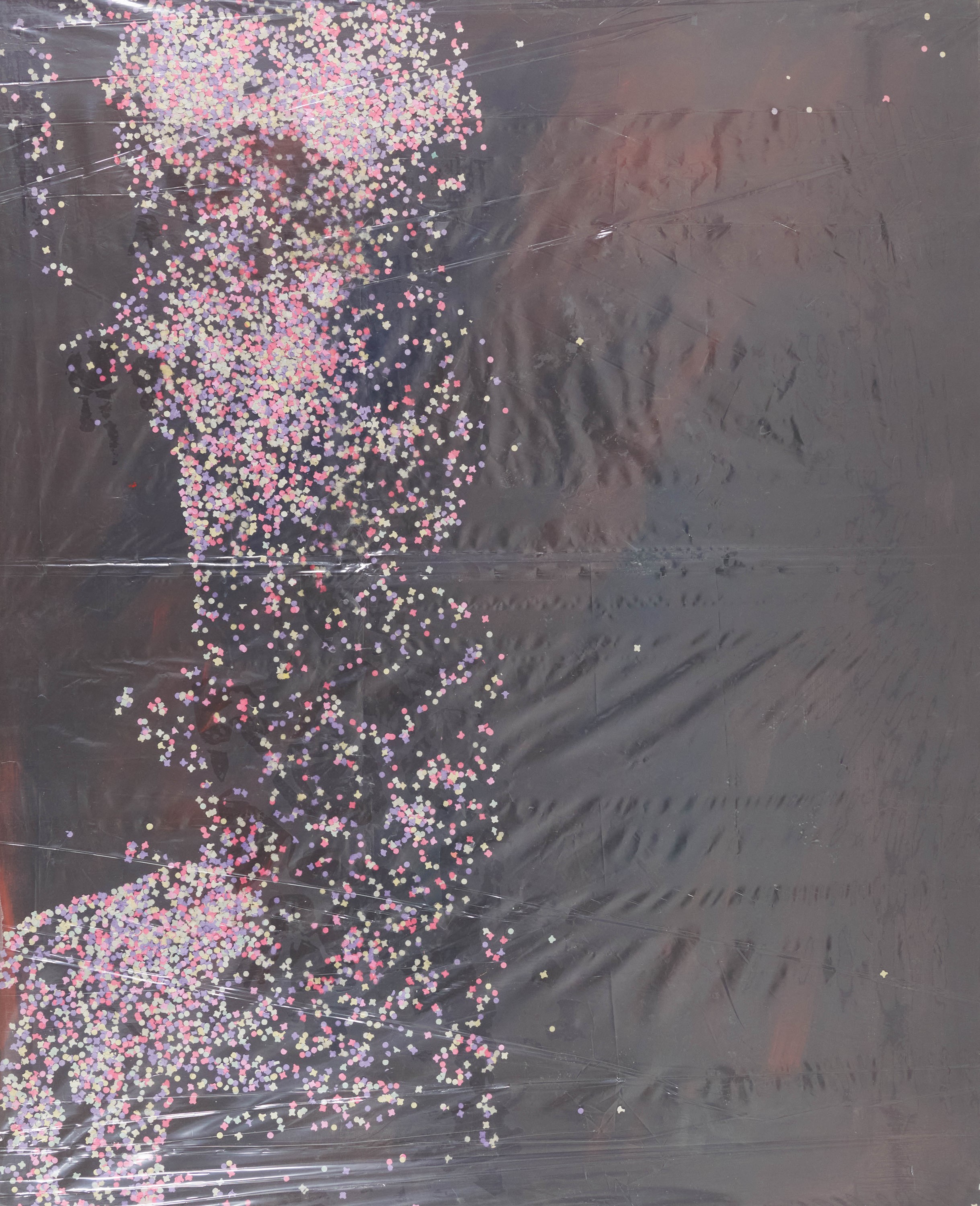 Tempera, coriandoli, colla su tela e cellophone, cm. 160x130