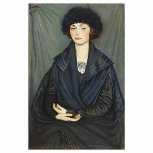 Oscar Ghiglia (Livorno 1876 - Firenze 1945) RITRATTO DI PAOLA OJETTI olio su tela applicata su cartoncino, cm [..]