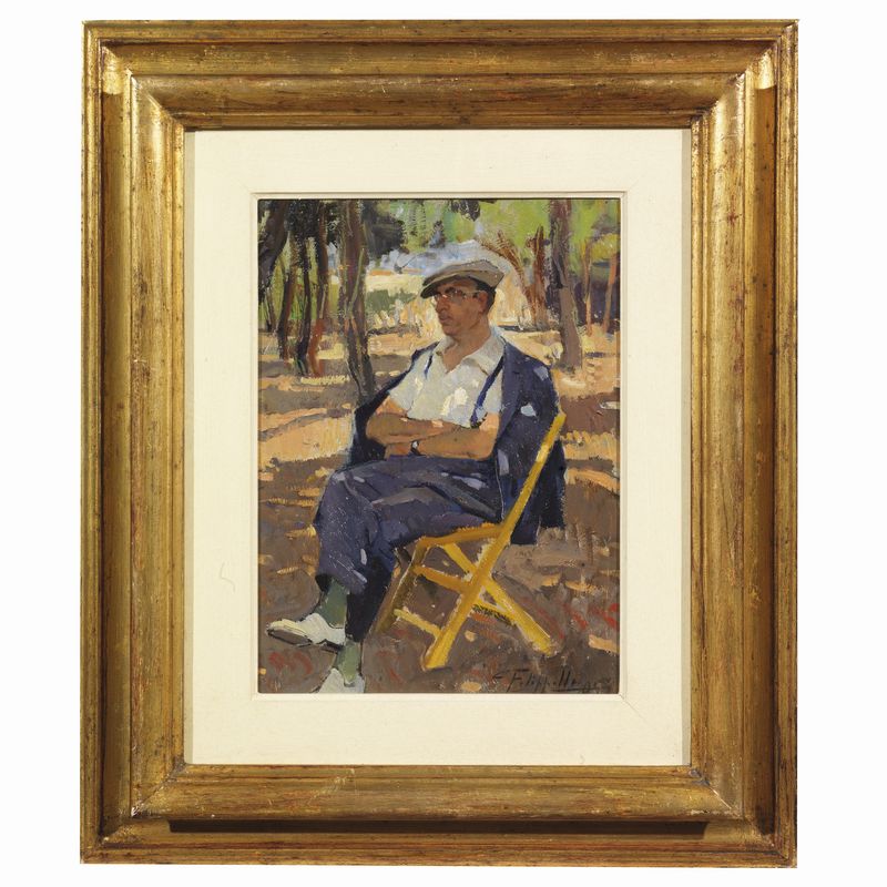Cafiero Filippelli (Livorno 1889 - Livorno 1973) RITRATTO DI MARIO BORGIOTTI olio su tavoletta, cm 29x21 firmato e datato in basso a destra retro: iscritto Alla gentile Signora/ Borgiotti/ Cafiero Filippelli/ 1959