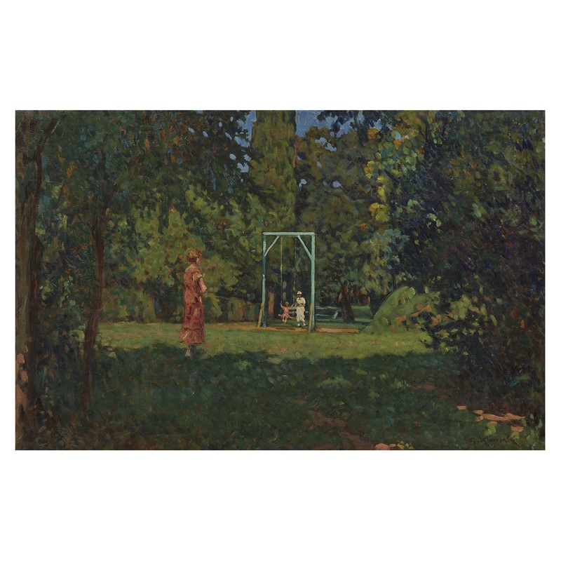 on the reverse: signed and titled L'altalena Fauglia, stamp ELENCO G.K. / N.39, stamp Collezione J. Gelati, stamp of the exhibition Kienerk, Musei Civici, Pavia, 31 maggio-20 luglio 1997