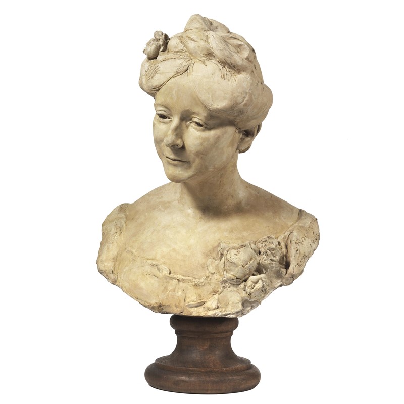 Particolarmente importante fu l’amicizia dell’ambasciatore di Francia Camille Barrère (1951-1940), politico di alto profilo, intellettuale raffinato, musicofilo e violinista dilettante lui stesso, che nei concerti pubblici di musica da camera organizzati a Palazzo Farnese invitò a suonare virtuosi internazionali tra i più celebri del momento. Testimonianza di tale predilezione musicale di Barrère, nel lungo servizio diplomatico a Roma (1897-1924), e dell’amicizia con Teresina Tua, è proprio il busto presentato in asta, esposto un tempo sul suo pianoforte nella Galleria dei Carracci, ove si tenevano i concerti privati dell’ambasciatore. Il busto -donato dallo stesso Barrère alla famiglia degli attuali proprietari al termine del suo mandato a Roma- è datato 1906, epoca in cui la violinista aveva quarant’anni ed era all’apice della propria sfolgorante carriera. Attraverso una suggestiva capacità introspettiva, lo scultore Bouchard sembra evocare tutta l’intensità del raccoglimento che precede l’esecuzione musicale.